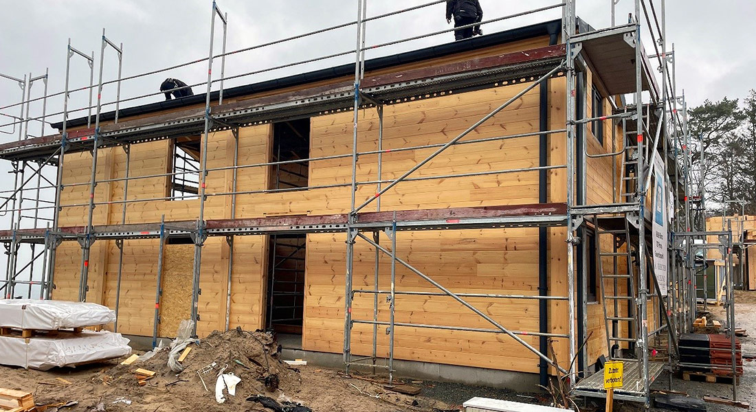 Hier entstehen vier Blockhäuser in ökologische Bauweise zur Vermietung. Wohngesundheit und frische Seeluft ergänzen sich zu einem perfekten Wohnerlebnis. Die Außenlasur der robusten Kiefernblockwände wird entsprechend des stärker reizenden und angreifenden Ostseeklimas angepasst. Grundsätzlich ist keine Schutzlasur für den Erhalt eines Fullwood Blockhauses notwendig, jedoch würde das Polarkiefernholz im Laufe der Jahrzehnte natürlich vergrauen und das möchten die meisten Bauherren nicht.