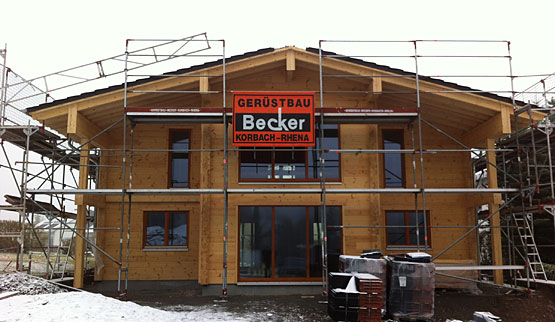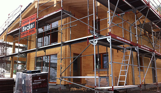 Hier entsteht ein Blockhaus mit zwei Vollgeschossen.