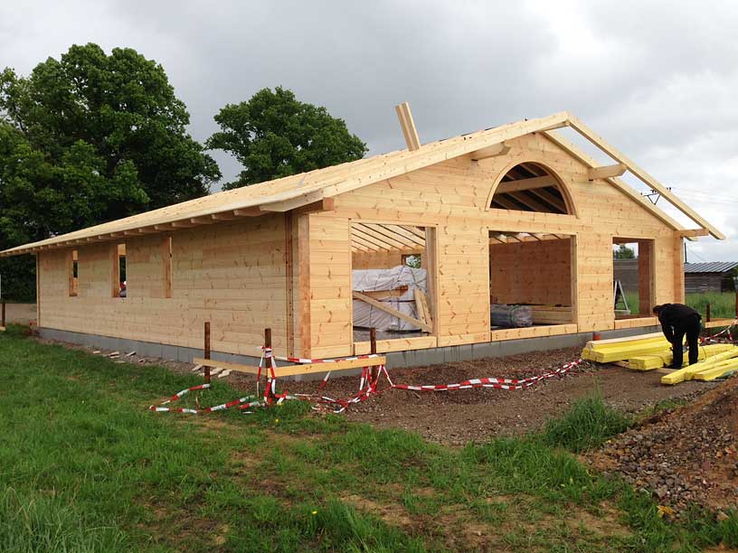 Der Bauherr baut für sich und seine Lebensgefährten sein Blockhaus selbst. Angeleitet und tatkräftig unterstützt wird er vom "Richtmeister", einem erfahrenen Zimmermann von Fullwood. Zusammen montieren sie die fertig angelieferten Wandelemente aus 20 cm dicken Kiefernbohlen. Die Schweiß treibende Arbeit klappt gut, wie der Baustellenfortschritt zeigt. Motivierend wirkt die Vorstellung, eines Tages im fertigen Blockhaus genüsslich die Beine hochzulegen und nur noch das angenehme Raumklima zu genießen.