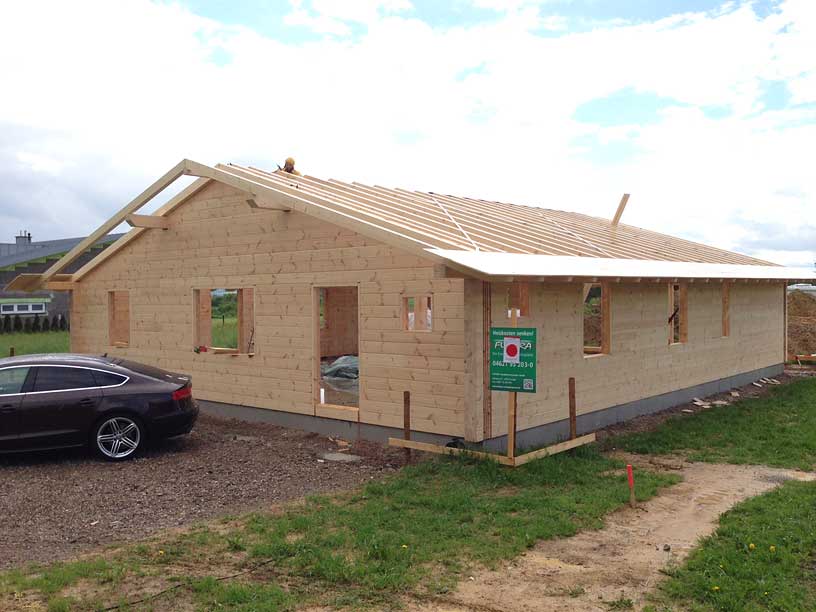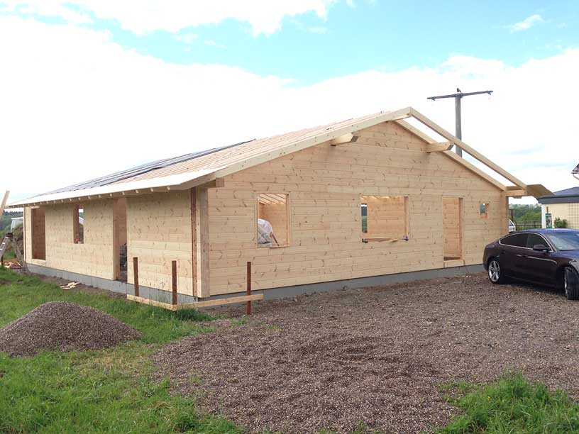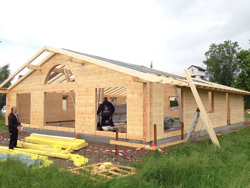 Im schönen, grünen Westerwald entsteht ein Blockhaus im Bungalow-Stil