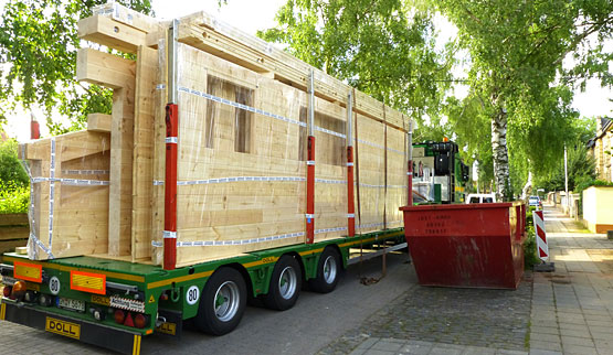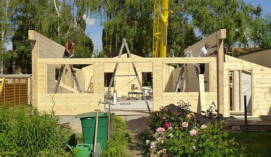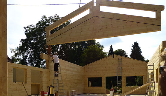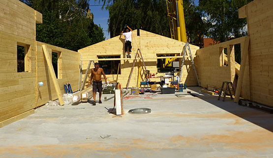 Fullwood Wohnblockhaus » Bauvorhaben » Blockhaus Aufbau in Rheinhessen im August 2013