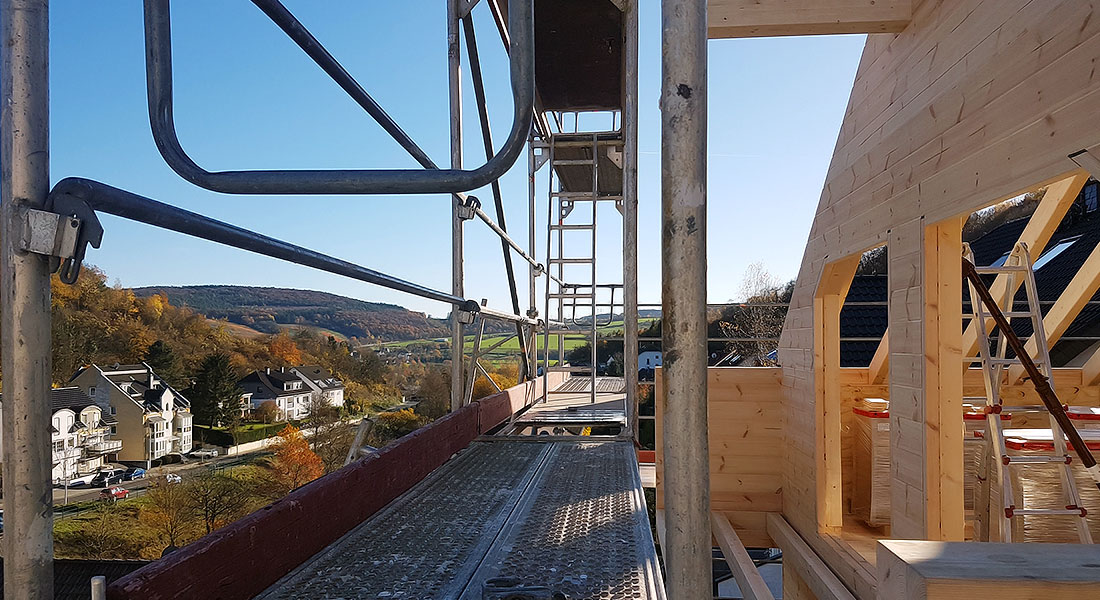 Die Bauherrschaft dieses Blockhauses ist jung und dynamisch und möchte entsprechend viel selber machen. Außerdem ist ihr gesundes und natürliches Wohnen wichtig, weshalb sie als Ergänzung zu den holzmassiven Außenwänden auf die Trennwände (leichter Ständerbau) im Hausinnern Lehmputz auftragen. Der ökologische Fußabdruck eines echten Fullwood Wohnblockhauses ist sowieso sehr klein, wovon auch spätere Generationen profitieren. Jetzt geht es aber in erster Linie ums bevorstehende Genusswohnen des Baupaares im eigenen Blockhaus.