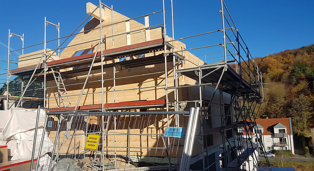 Ideales Team beim Blockhaus Bau: Holz + Lehm