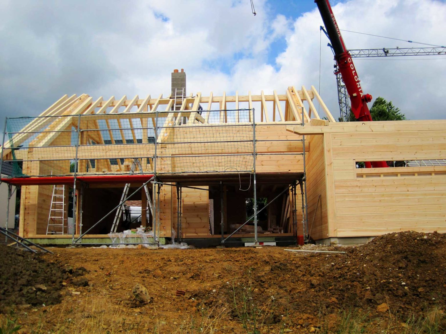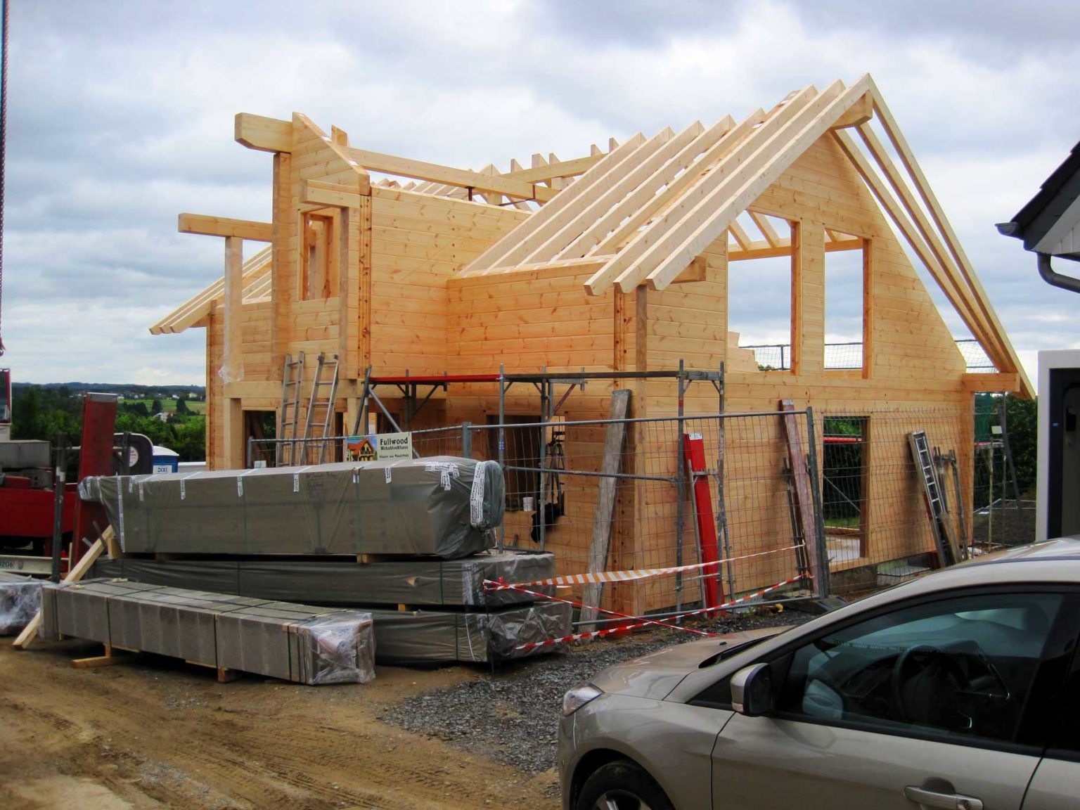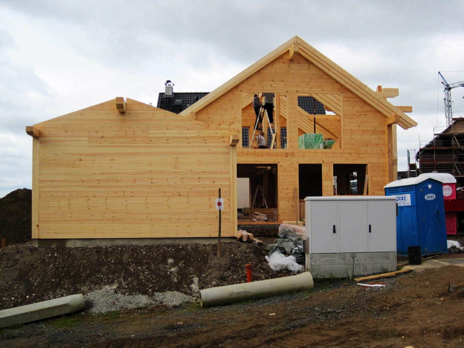 Der unverbaubare Blick auf die Ausläufer des Bergischen Landes gibt den Ausschlag für die Bauherren, genau dieses Grundstück für ihr lang ersehntes Blockhaus zu kaufen. Die massive Einschaligkeit bei gleichzeitiger Setzungsfreiheit der Fullwood-Blockwände überzeugt sie, unbedingt mit Fullwood Wohnblockhaus ihr Blockhaus zu bauen. Natürlich ganz individuell nach den eignen Wünschen und Vorstellungen entsteht das neue Blockhaus in enger Zusammenarbeit mit Fullwood zuerst auf dem Papier, dann im Computer, danach in einzelnen Elementen und Bauteilen in der Werkstatt und zuletzt auf dem Bauplatz! Ein großes Blockhaus mit Eckerker im Dachgeschoss, Balkon und Anbau (Garage + HWR) entsteht Schritt für Schritt in kurzer Zeit.