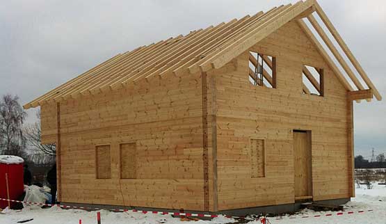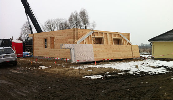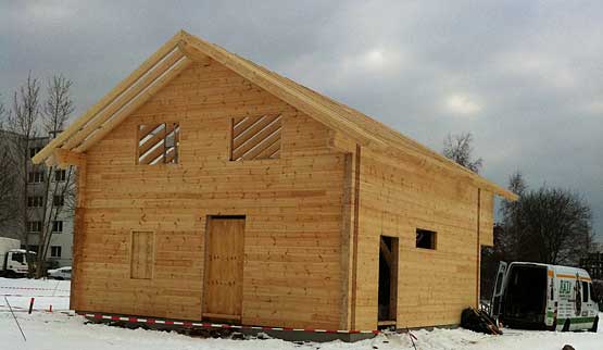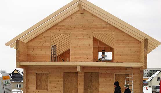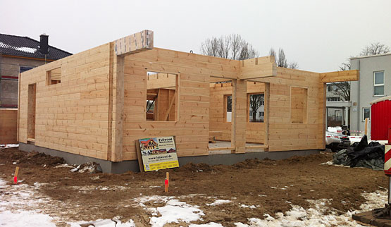 "Die Berliner Luft" umweht munter dieses im Bau befindliche Blockhaus von Fullwood. Um schnellstens in den Genuss der guten Raumluft und des gesunden Wohnklimas eines Fullwood-Hauses zu kommen, errichten die Bauherren ihr Blockhaus trotz des derzeit herrschenden, unwirtlichen Winterwetters. Die passgenauen Fertigwände, die sich einfach und schnell montieren lassen, machen dies möglich. Wirklich Spaß macht der Hausaufbau unter diesen Bedingungen natürlich nicht, aber die Aussicht, bald in ihr neues Blockhaus Berlin einziehen zu können, motiviert die Bauherren ungemein. Jetzt ist erst einmal Durchhalten angesagt.