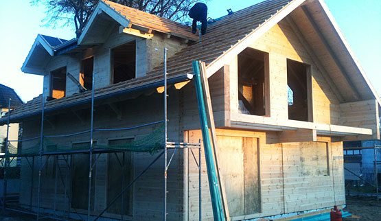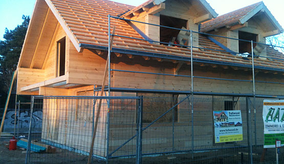 Fullwood Wohnblockhaus » Bauvorhaben » Blockhaus Baustelle in Brandenburg im Dezember 2012