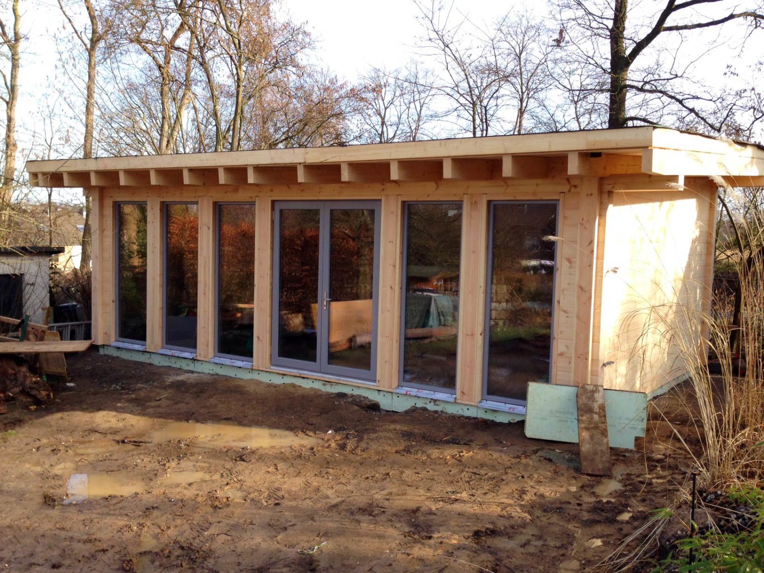 Nachdem der Bauherr ein echtes Fullwood Wohnblockhaus gekauft hat, baut er nun ein kleines Blockhaus als Atelier für seine Kunst. Die großen Fensterflächen gewährleisten bestes Licht beim Malen und die massiven Kiefernwände sorgen für das angenehme Klima, von dem Künstler und Kunst profitieren. Von diesem Klima und dem angenehmen Wohngefühl in seinem Blockhaus sowie von der Qualität von Fullwood ist der Bauherr so begeistert, dass er unbedingt auch in solch inspirierender Wohlfühlatmosphere arbeiten möchte. Ob sich die Umgebung auf die Kunst auswirken wird? Wundern würde es uns nicht.