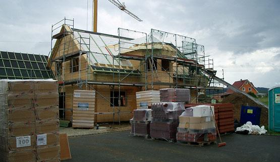 Eine dreiköpfige Familie baut sich ein Blockhaus am "Tor zum Obermain", natürlich mit Fullwood.