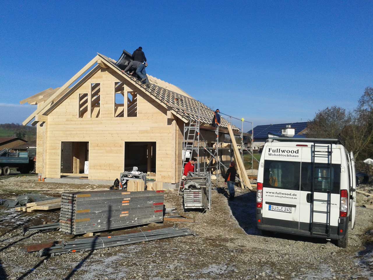 Zum Glück dauern die Montage und der Ausbau eines Blockhauses von Fullwood nicht so lange wie hier die Baugenehmigung gedauert hat. In 4 Tagen steht der Rohbau inklusive Dachstuhl und die Ausbauzeit beläuft sich in der Regel auf 3 - 6 Monate. Der Einzug ist somit in greifbare Nähe gerückt.