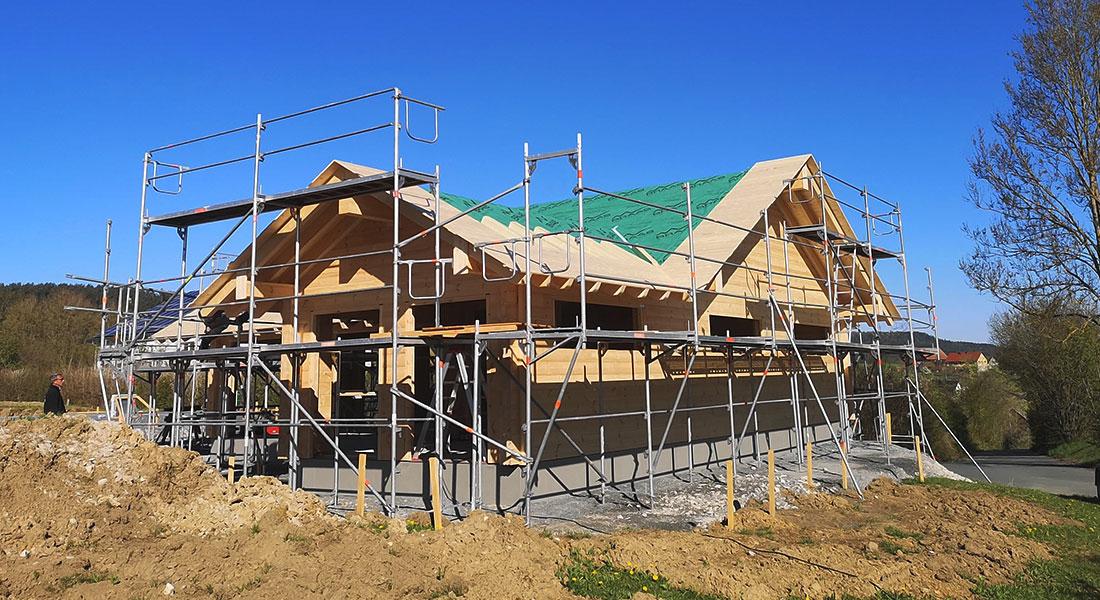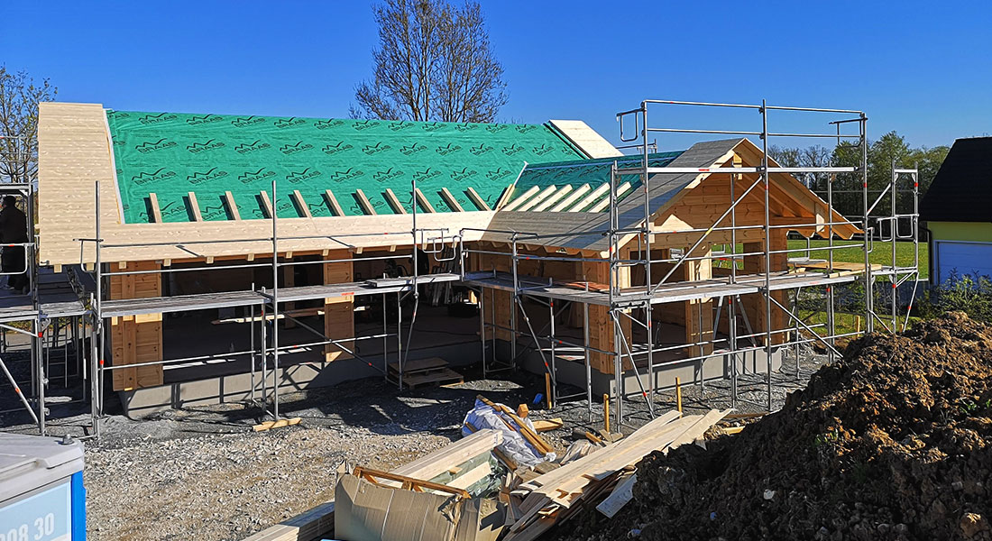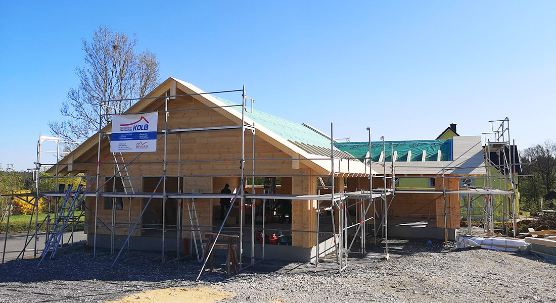 Der Aufbau des Blockhauses geht schnell und reibungslos. Das Traumhaus wird aus den 20cm dicken, einschaligen Blockwänden gebaut, die zuvor passgenau im Werk gefertigt werden. Neben der glatten und geradlinigen Optik gefallen dem Baupaar besonders die setzungsfreien Eigenschaften der Fullwood-Wände.