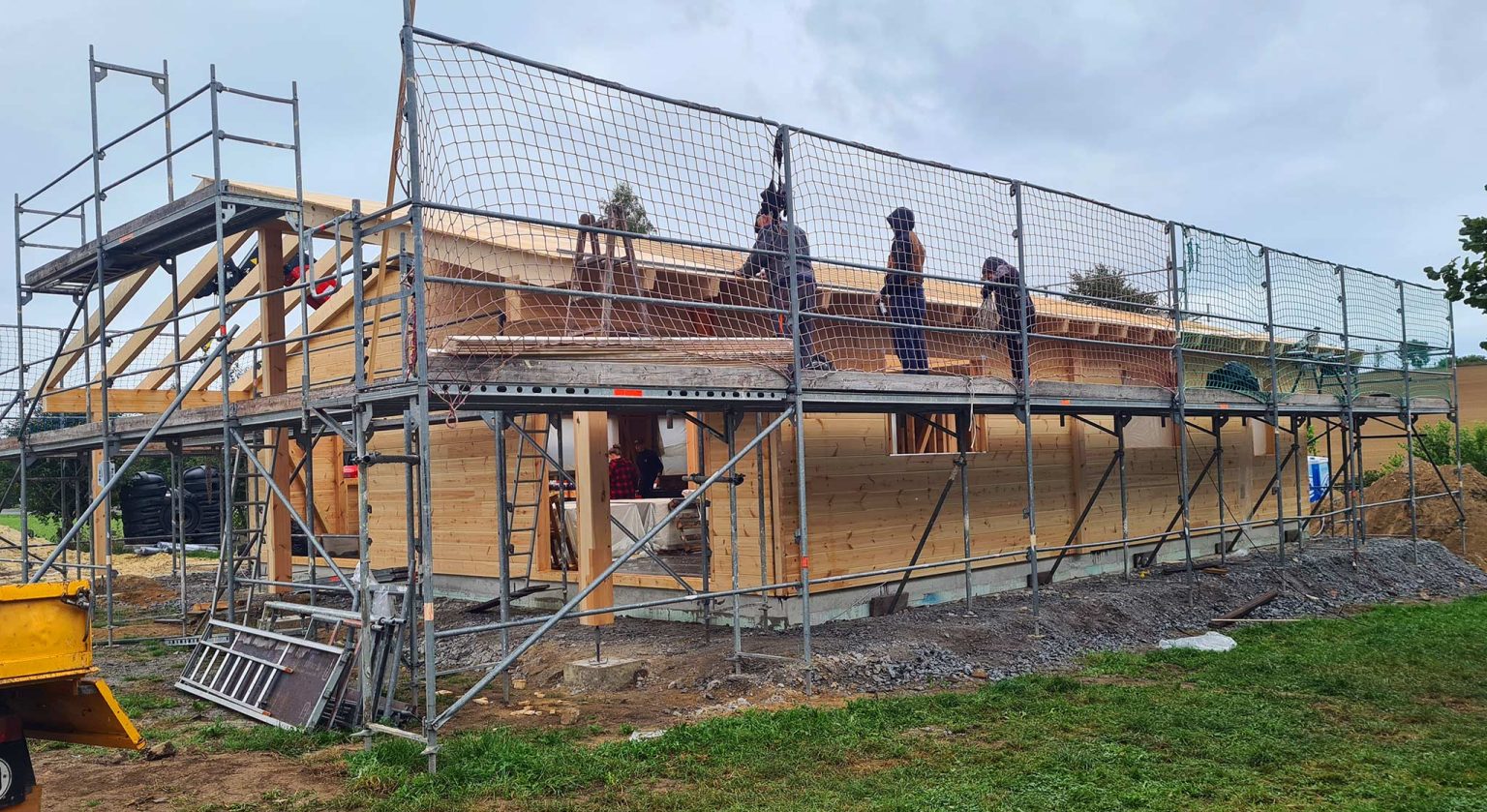 Blockhaus Bau können die Häuslebauer viel Geld sparen. Durch Hinzuziehen örtlicher Fachhandwerker profitiert auch die lokale Wirtschaft von dem Hausprojekt.
