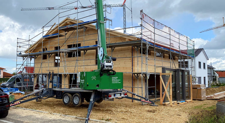 Hier entsteht ein massives Blockhaus mit Ferienwohnungen für Urlauber in Wallgau bei Garmisch-Partenkirchen. Das große Blockhaus in nachhaltiger ökologischer Bauweise bietet einen wunderschönen Ausblick auf's alpine Hochgebirge. Verbaut wird die 20er Blockwand – eine Massivholzwand ohne jegliche Dämmung, die zudem setzungsfrei ist. Beides ist den Bauherren besonders wichtig. Dass der Rohbau bereits nach 2 Tagen fertig ist, hätten sie zuvor nicht geglaubt und auch der zuständige Richtmeister von Fullwood lobt die engagierte Mitarbeit der Bauherrschaft besonders.