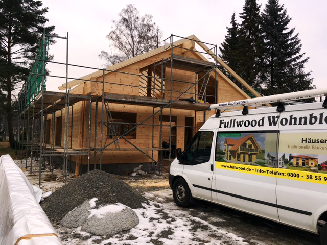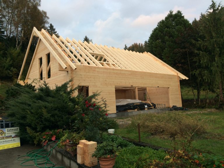 Ein Unternehmer-Ehepaar aus der Backbranche erfüllt sich seinen lang gehegten Traum vom eigenen Blockhaus. Schon während der Bauphase gibt es viel Bewunderung von anderen Blockhaus Besitzern der Region. Als echte Handwerker loben die Bauherren besonders die handwerkliche Leistung von Fullwood Wohnblockhaus, die der planerischen Vorarbeit in nichts nachsteht. Tradition und moderner Fortschritt sind ihnen aus der eigenen Branche bestens bekannt, und deshalb legt das Baupaar viel Wert auf ein qualitativ hochwertiges Blockhaus. Derzeit sind die Arbeiten im Blockhaus noch in vollem Gange, äußerlich ist schon alles getan.