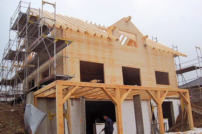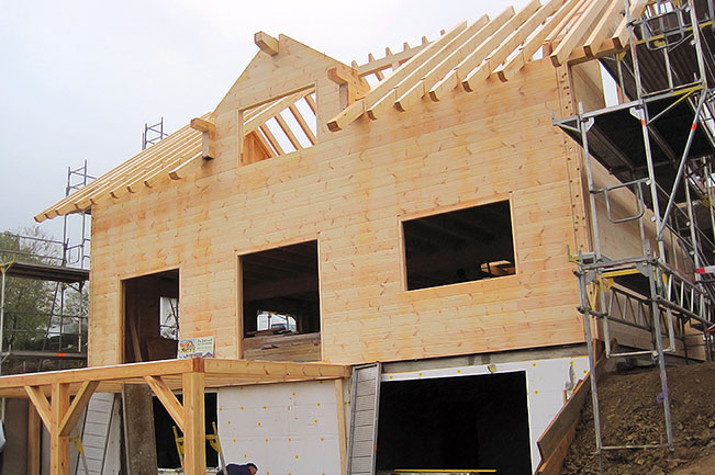Bei diesem Blockhaus handelt es sich um die bewährte Kombiblockwand von Fullwood, die gleichermaßen solide, stabil, langlebig und natürlich setzungsfrei ist wie ihre schwere Schwester, die einschalige Blockwand. Wichtig ist den Bauherren außerdem die regionale Nähe zu ihrem Blockhaus Hersteller, so fühlen sie sich sowohl in der Planungsphase als auch in der Bauphase bestens betreut.