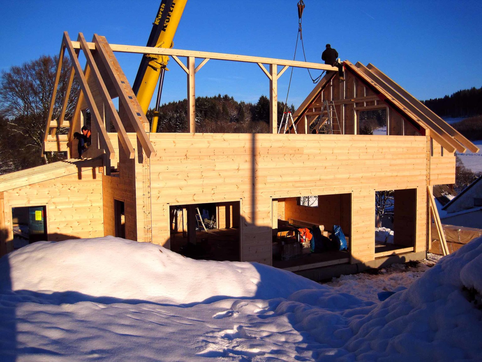 Das frisch vermählte Ehepaar träumt schon lange von einem eigenen, echten Blockhaus aus Massivholz. Wichtig ist den Bauherren vor allem Setzungsfreiheit - weshalb sie bei Fullwood genau richtig aufgehoben sind – und daraus folgernd Wartungsfreiheit. An dem Blockhaus muss nach Beendigung der Bauarbeiten nie mehr „herumgeschraubt“ und nachgebessert werden. Das Baupaar zeigt sich hoch zufrieden mit der Produktion im Werk und dem Aufbau durch den Fullwood-Richtmeister, den sie zusammen mit einer Hand voll Freunden tatkräftig unterstützt haben. Voll des Lobes schwärmen die frisch gebackenen Hauseigentümer von allen Mitarbeitern des Blockhausspezialisten, von der Wandqualität und von der individuellen, exakten Hausplanung – das kann eigentlich nur noch vom späteren „Genusswohnen“ in ihrem entstehenden Blockhaus getoppt werden!