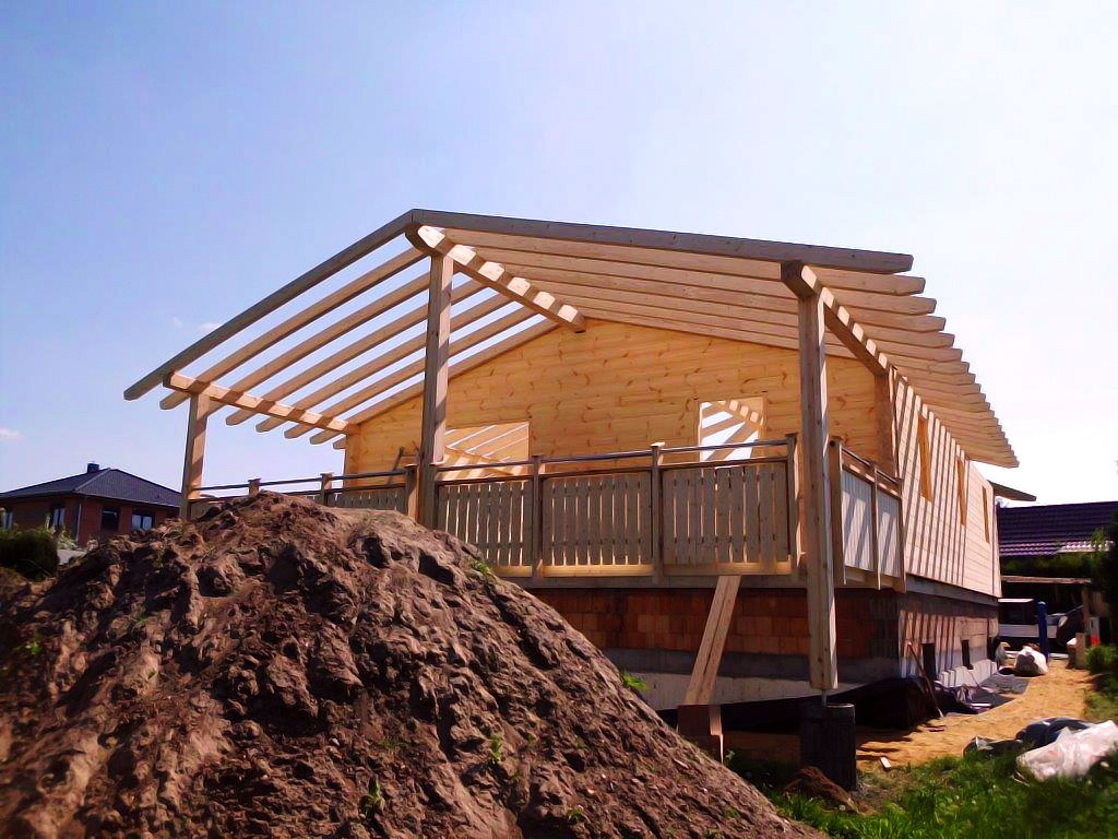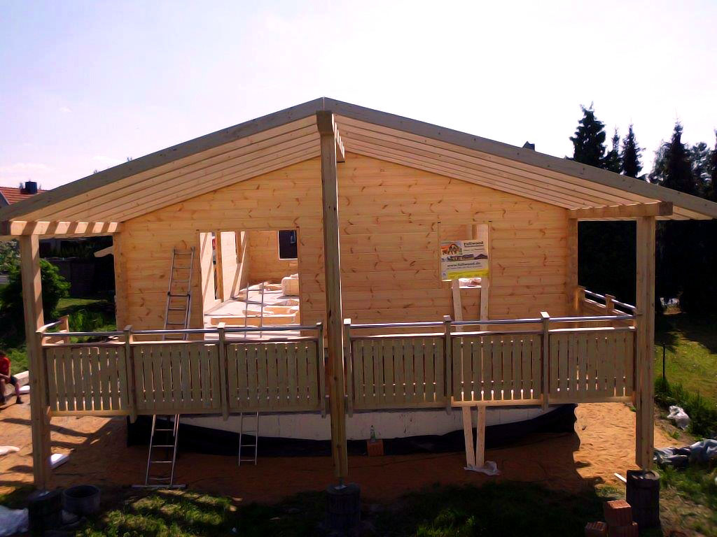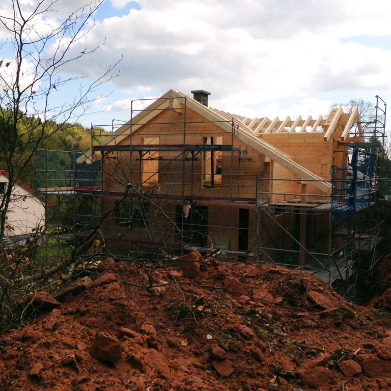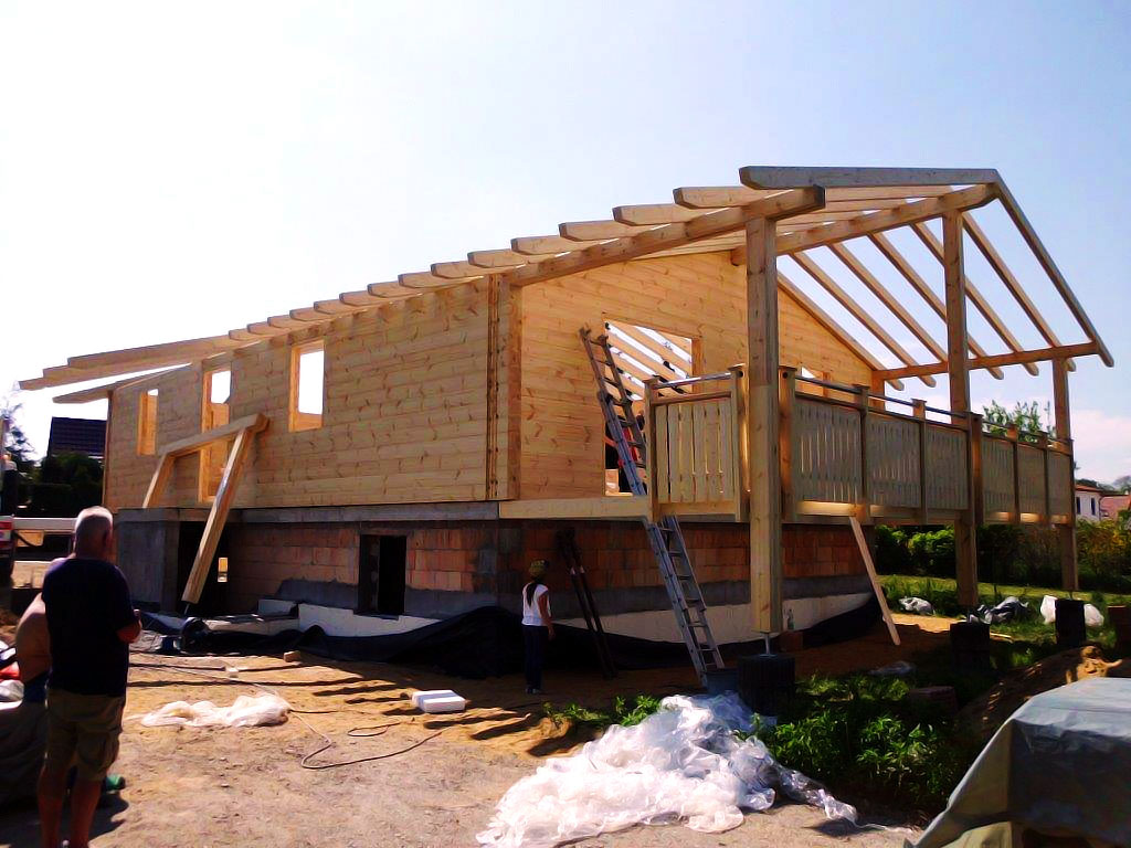 Auf ein gemauertes Kellergeschoss setzt Fullwood Wohnblockhaus dieses massive, eingeschossige Blockhaus. Dank der setzungsfreien Vollholzwände ist das problemlos möglich. Ebenso möglich macht Fullwood die Blockhaus Montage als sogenannte „Richtmeistermontage“, sofern von den Bauherren gewünscht. Dabei transportiert Fullwood die im Werk passgenau vorgefertigten Wandelemente termingetreu zum Bauplatz, wo sie wetterunabhängig von einem Richtmeister und seinen Helfern – z. B. Bauherren und deren Freunde/Familie - montiert werden. Die Montage von einem Blockhaus dauert nur wenige Tage und ist, wie hier, je nach Größe in einer Woche erledigt, inklusive Dachstuhl und Dacheindeckung!