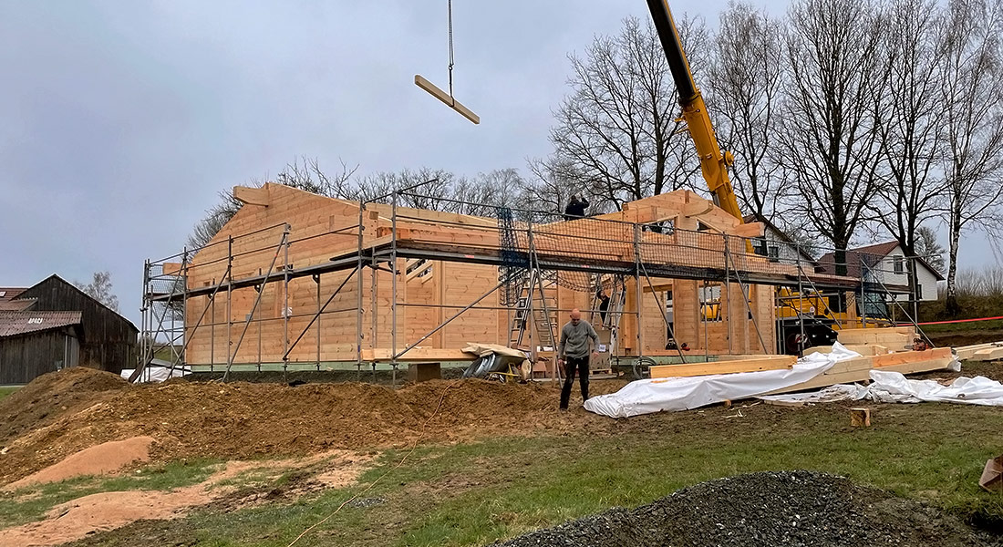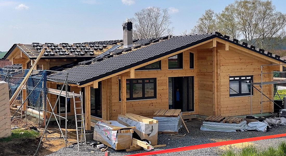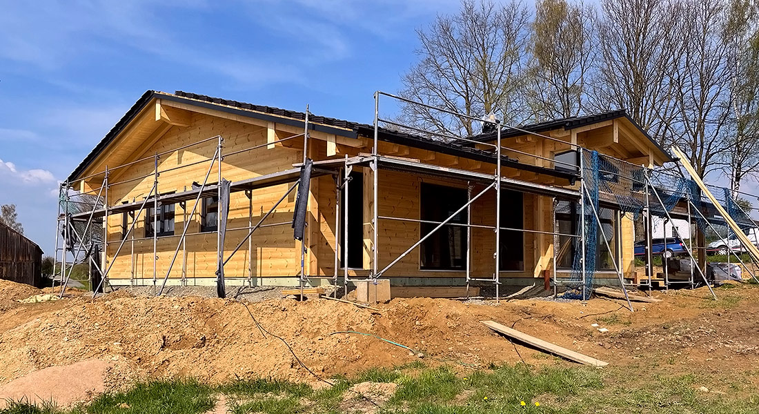 Die Bauherrschaft erfüllt sich ihren Traum vom massiven Blockhaus in Form eines luxuriösen, eingeschossigen Altersruhesitzes. Angeregt durch Blockhaus „am Oberrhein“ entsteht die Hausplanung dennoch individuell auf das Baupaar zugeschnitten. Nach der exakten Wandherstellung im Werk und dem Transport aller Wände und Bauteile zum Bauort, wird das barrierefreie Blockhaus als „Komplettmontage“ errichtet. Wie bei Fullwood Wohnblockhaus üblich, wählen auch diese Bauherren ihre Baustufe selber aus.