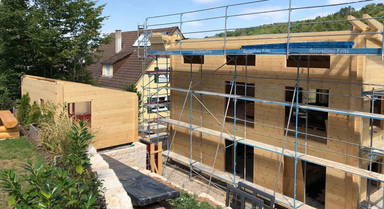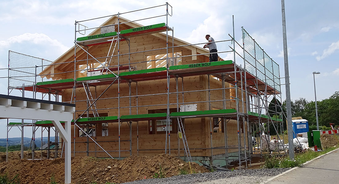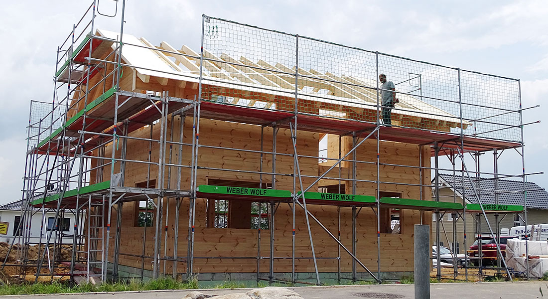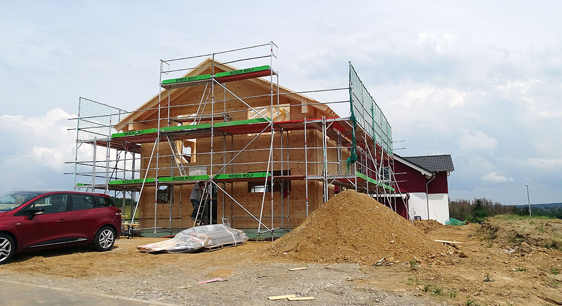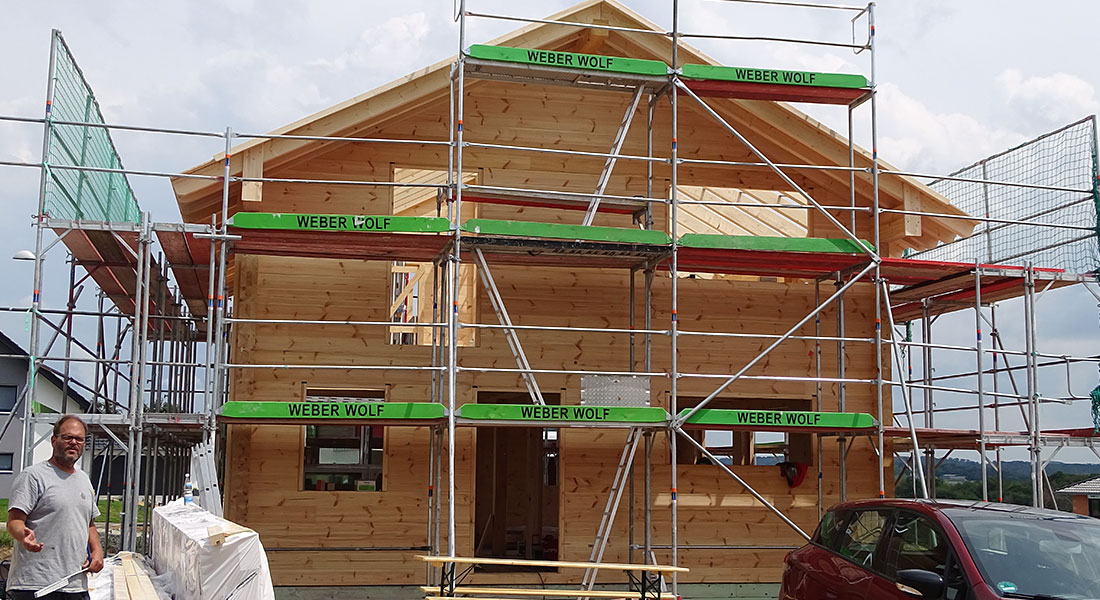 Nicht mehr lange und die Baufamilie kann in ihr ersehntes Blockhaus einziehen. Momentan wird aber noch fleißig am und im Blockhaus gebaut. Die Bauherrschaft möchte und darf sehr viel selbst machen – bei Fullwood eine Selbstverständlichkeit, denn der Kunde ist hier König und wird von a bis z individuell bedient! Trotz Regen am Anfang der Bauphase läuft auf der Baustelle alles wie am Schnürchen .
