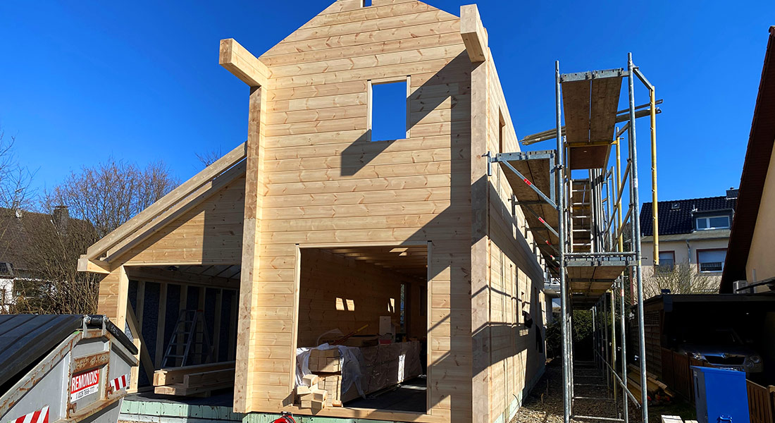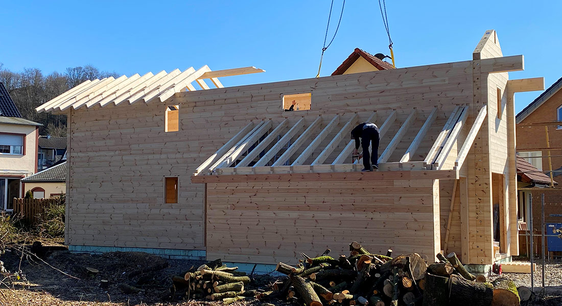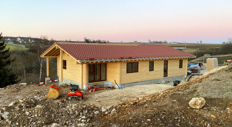 Auf einem länglich-schmalen Grundstück inmitten eines Örtchens entsteht dieses individuelle Blockhaus. Dank der gewählten Vollmontage in nachhaltiger Bauweise hat die Bauherrschaft wenig Arbeit mit dem Blockhaus Bau und kann dem Einzug gelassen entgegen sehen. Verbaut wird die einschalige (also ungedämmte), 20cm dicke Blockwand, die selbstverständlich ebenfalls ökologisch gebaut wird.
