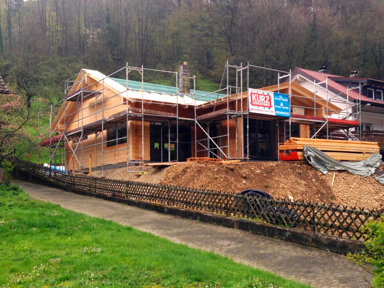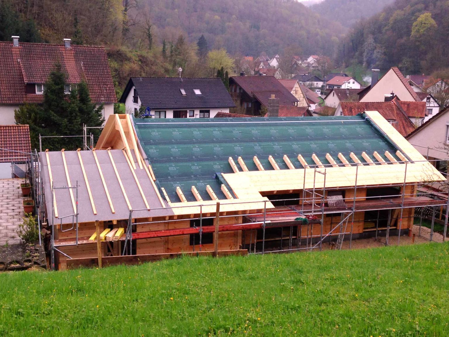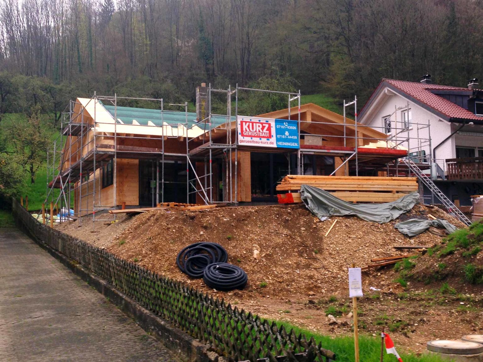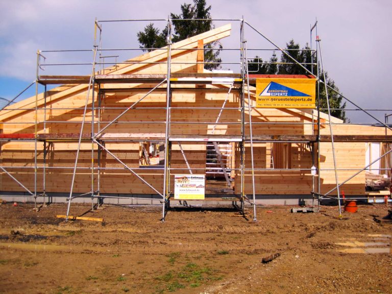 Die Bauherren sind froh, die letzte Baulücke für ihren Blockhaus Bungalow ergattert zu haben. Die 20cm dicken Vollholzwände werden von den Fullwood-Monteuren in wenigen Tagen aufgestellt. Da sie zuvor passgenau im Werk vorgefertigt wurden, geht es nun auf der Baustelle sehr schnell. Durch die Fertigkonstruktion sind die Kiefernwände setzungsfrei und natürlich absolut winddicht. Die Bauherren freuen sich aufs Genusswohnen in ihrem echten Fullwood Blockhaus und auf die herrliche Aussicht, die sich Ihnen von dort bietet.