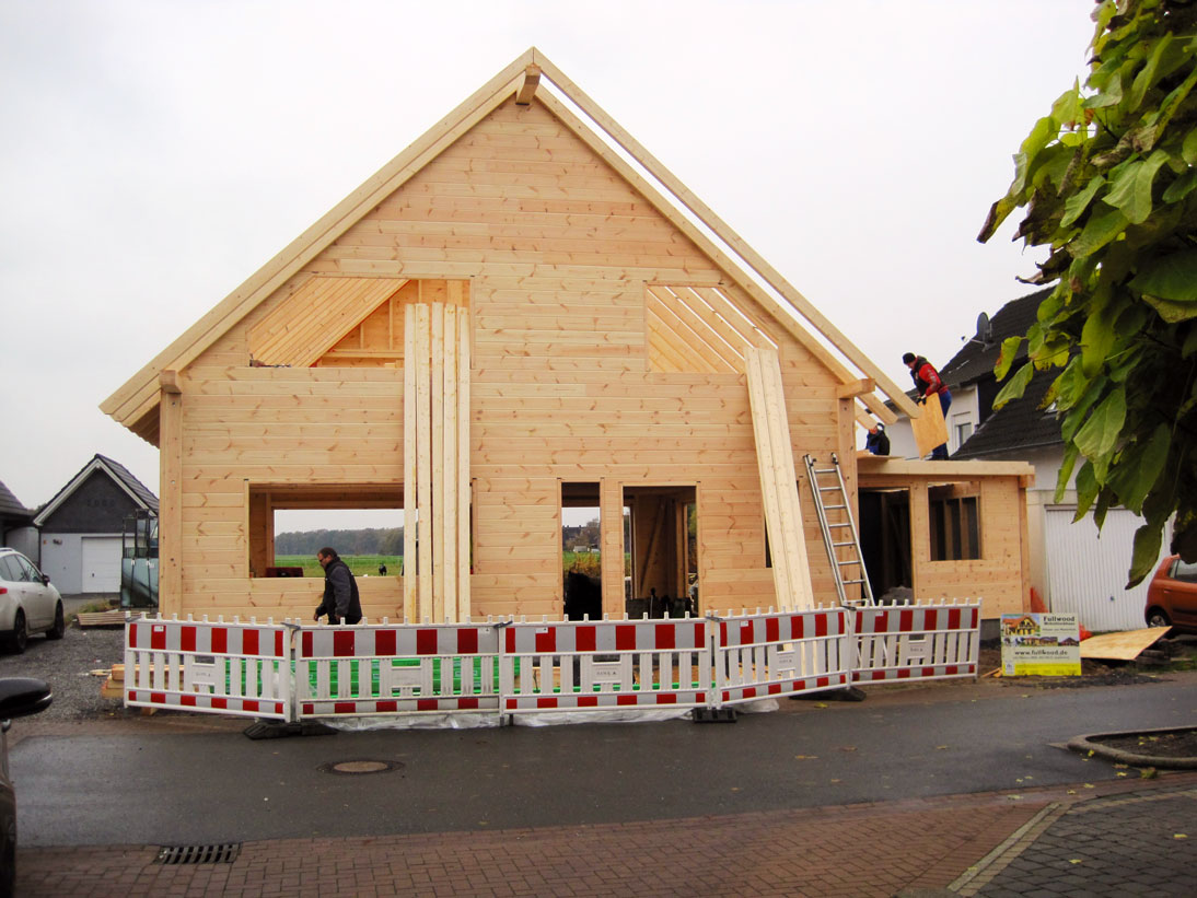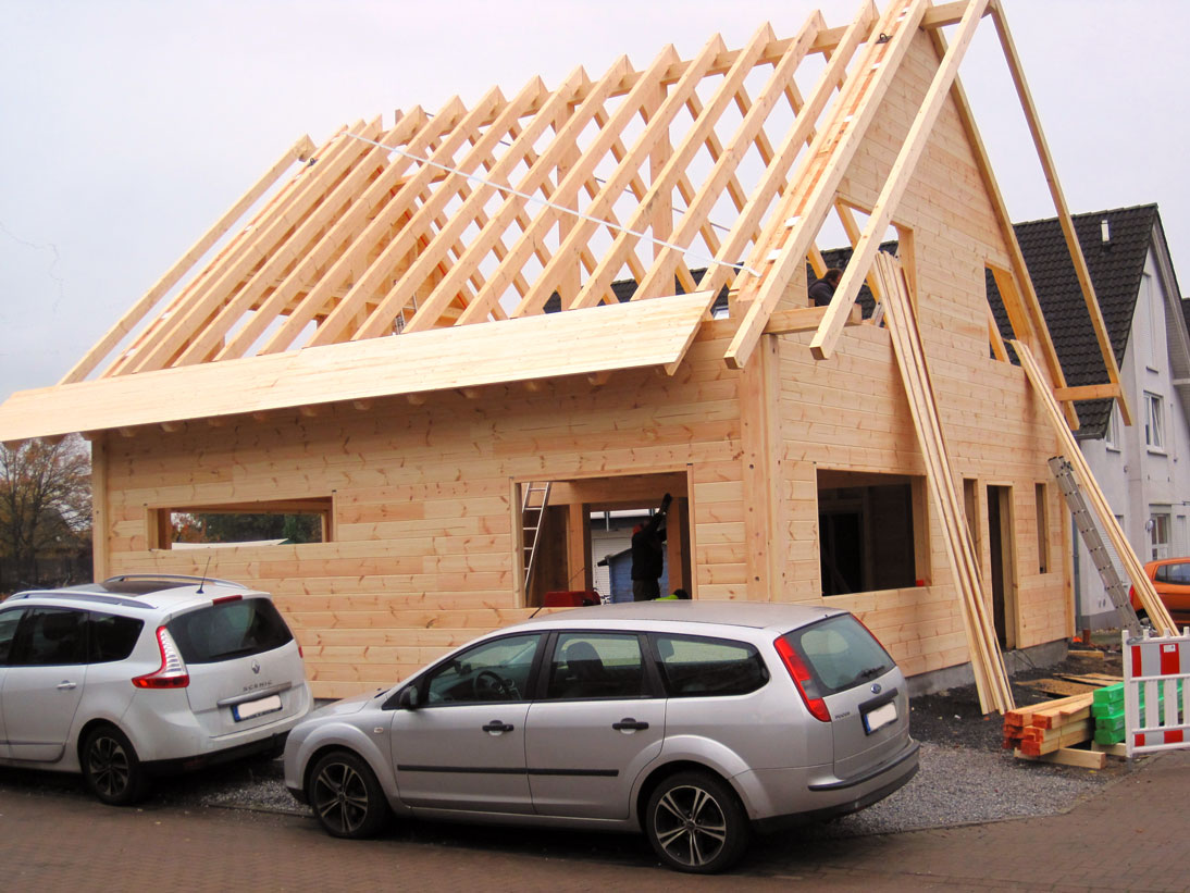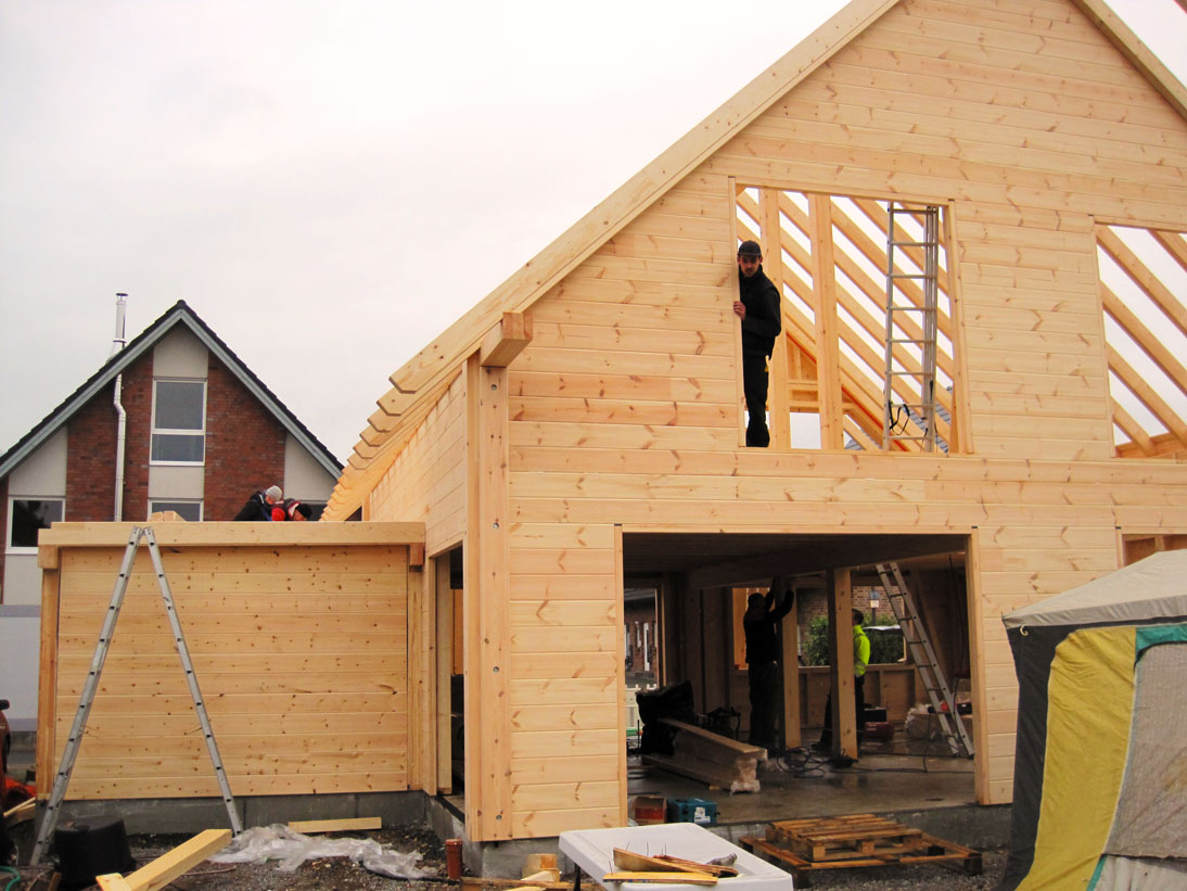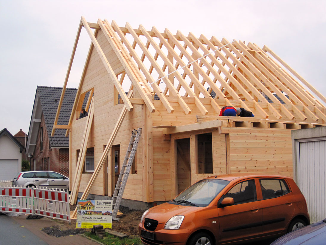 Mittlerweile ist das Dach bereits fertig gedeckt und Fenster und Türen sind eingebaut, so dass der Ausbau flott vorwärts gehen kann. Die Bauherren sind erfreut, wie schnell ihr Blockhaus wächst und gedeiht, und die Nachbarn sind überrascht, wie fix ein Blockhaus von Fullwood perfekt montiert wird. Welch ein guter Start ins neue Jahr, und das Beste - nämlich der Einzug und das Leben im eigenen wohngesunden Blockhaus von Fullwood - steht auch noch 2017 bevor!