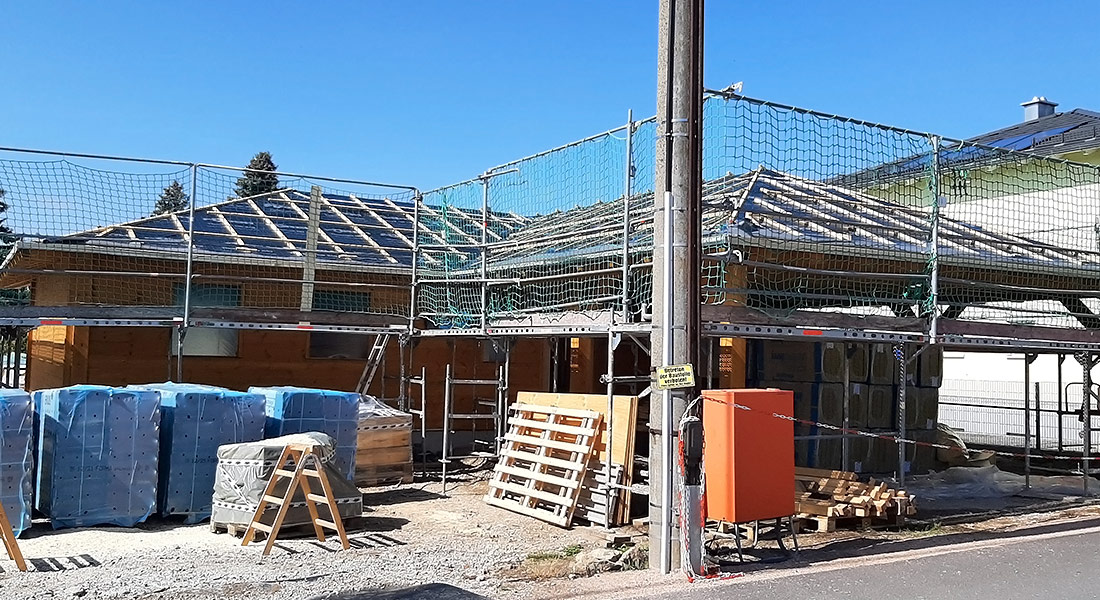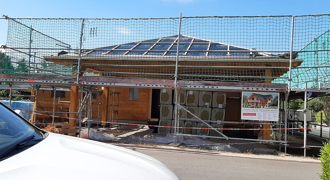 Hier verwirklicht ein Heizungsbauer sein eigenes eingeschossiges Blockhaus in nachhaltiger Bauweise. Unter der Regie des Fullwood-Richtmeisters fühlt sich der Profihandwerker sehr gut aufgehoben. Um mehr Flexibilität bei der Gestaltung der Innenwände zu haben, entscheidet sich der Bauherr bei seinem Blockhaus für die gedämmte Kombiblockwand mit Installationsebene und flexibel verkleidbarer Innenseite.
