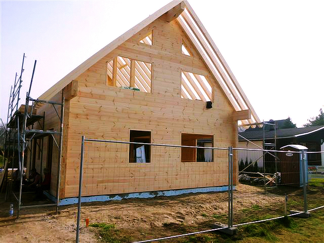 Mit sehr viel Eigenleistung baut eine Bauherrenfamilie ihr Blockhaus in Brandenburg. Lediglich ein Mindestmaß an handwerklichem Geschick und gute körperliche Verfassung müssen Bauherren mitbringen, die ihr individuelles Blockhaus unter der Regie eines Richtmeisters (Zimmermann) selbst aufstellen wollen. Denn Dank der detaillierten Planung und passgenauen Wandfertigung von Fullwood, ist die sogenannte „Richtmeistermontage“ für jedermann möglich. Die Qualität der 20 cm dicken Wandelemente aus widerstandsfähiger Nordischer Kiefer gewährleistet Langlebigkeit über viele Generationen.