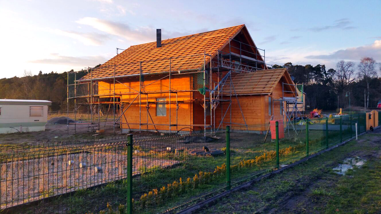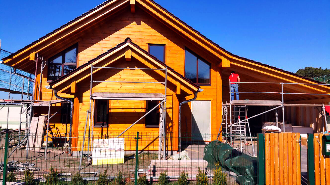 Wie viele Bauherren, engagiert sich auch diese Bauherrschaft tatkräftig beim Aufbau und Ausbau ihres Blockhauses. Der Pferdebegeisterte und –besitzende Hausherr arbeitet jede freie Minute an und in seinem Blockhaus. Sein Ziel ist es, das Haus bis zum Jahresende komplett fertigzustellen. Da der Baufortschritt flott voran geht und genau im Zeitplan ist, sollte das neue Blockhaus im Dezember bezugsfertig sein. Dank der modernen Fertigungstechnik der Vollholzwände, sind diese nicht nur schnell zu montieren, sondern vor allem auch setzungsfrei und absolut winddicht.