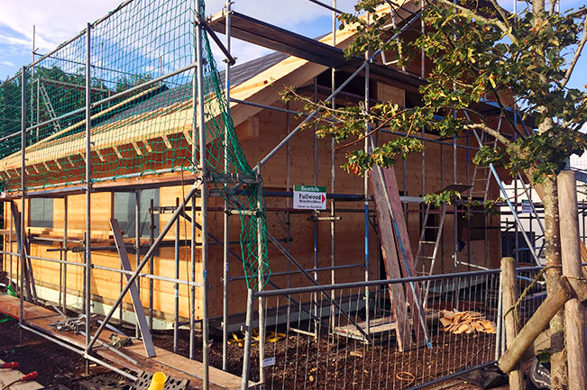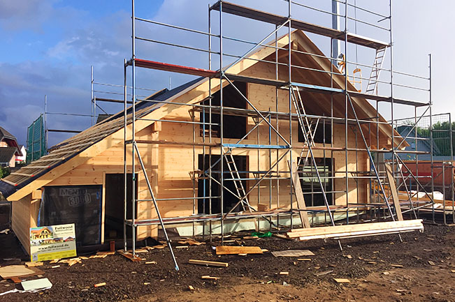 Nun baut der erfahrene Holzspezialist sein eigenes Blockhaus mit Fullwood Wohnblockhaus. Das macht uns einmal mehr stolz! Selbstverständlich entscheidet sich die Bauherrschaft für die 20cm dicke, einschalige Blockwand für sein Blockhaus. Von deren Qualität konnte sich der Bauherr seit langem überzeugen und seiner Frau gefällt nicht zuletzt die Optik. Da sich der Bauherr mit Holz als Baustoff bestens auskennt und er als Handwerker zwei rechte Hände hat, hat er sich für eine Richtmeistermontage mit viel Eigenleistung entschieden.