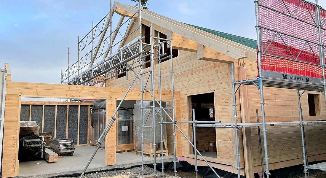 Blockhaus mit Massivholzwänden & Holzweichfaser-Dachdämmung