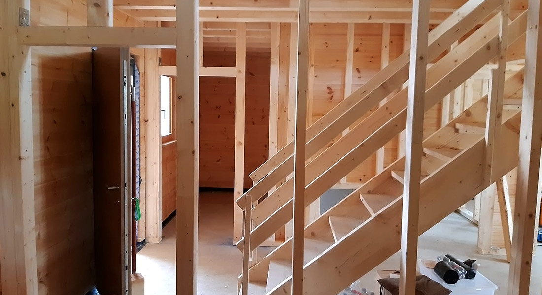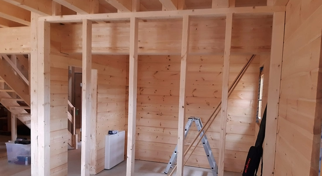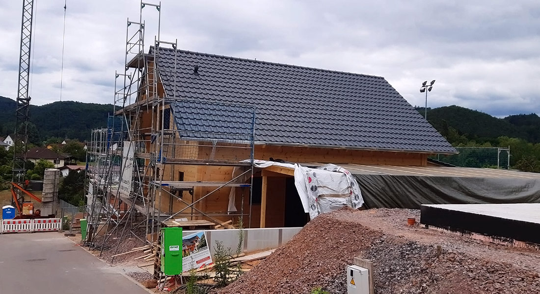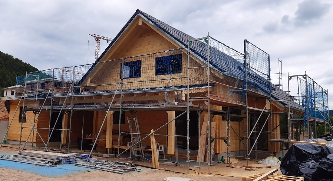 Auch dieses individuell nach Bauherrenwunsch geplante Blockhaus entsteht in ökologischer und nachhaltiger Bauweise. Wie die allermeisten Bauherren von Fullwood Wohnblockhaus wählen auch diese für ihr Blockhaus die 20cm dicke, einschalige Blockwand aus Polarkiefernholz. Ganz natürlich und chemisch unbehandelt garantiert sie ein behagliches und gesundes Raumklima und Wohngefühl. Darauf freut sich auch diese Bauherrschaft ganz besonders. Momentan arbeiten örtliche Handwerksfirmen emsig an der Fertigstellung des Innenausbaus (Fliesen, Sanitär, Heizung, etc.).