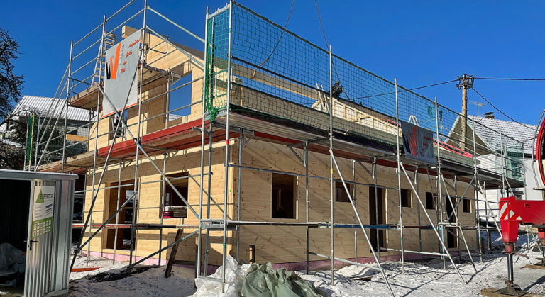 Blockhaus Neubau neben Musterhaus