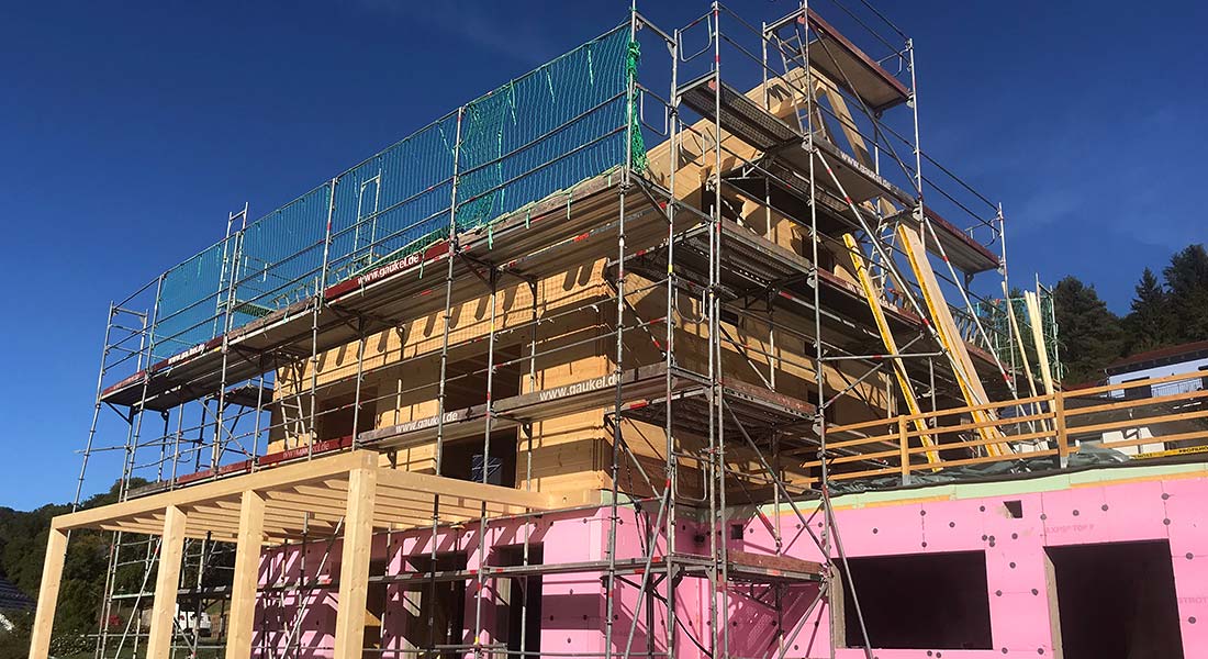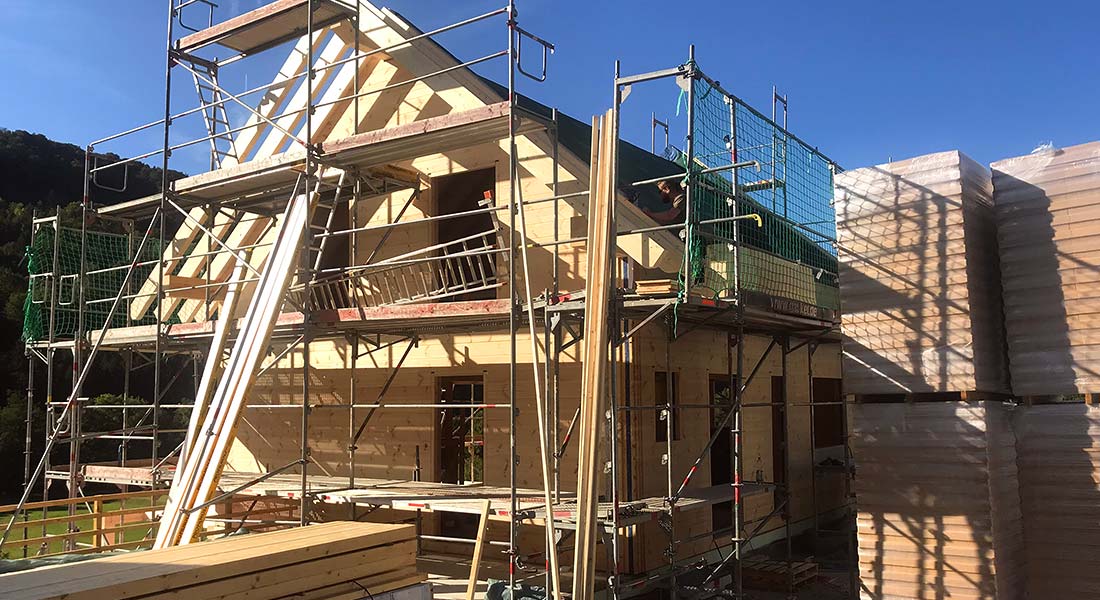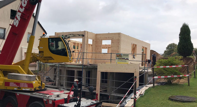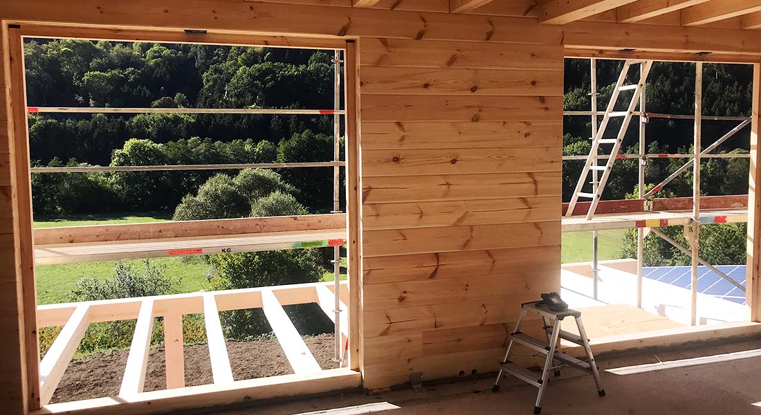 Dank der Setzungsfreiheit seiner Blockwände, kann das Blockhaus einfach und schnell auf die Kellermauern gesetzt werden. Die Montage erfolgt mit viel Eigenleistung seitens Bauherrschaft. Das bedeutet, dass der Fullwood-Richtmeister das Blockhaus anleitend mit aufstellt und seine Arbeit beendet, nachdem der Dachstuhl fertiggestellt und die Dachziegelmontage vorbereitet ist.