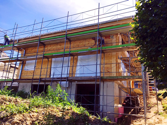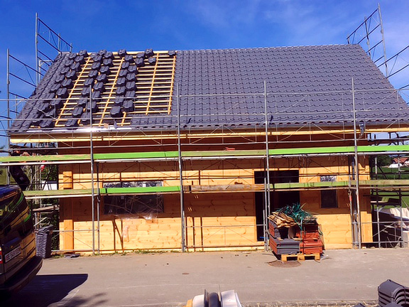 An und für sich ist jedes Blockhaus von Fullwood schon "superior", jedoch wird dieses Exemplar mit der extra-dicken 27-er Vollholzwand gebaut - der absoluten "Luxuswand" von Fullwood. Mit sehr hohem, pesönlichen Engagement und einem Maximum an Eigenleistung der gesamten Baufamilie, sowie anfänglicher Anweisung und Unterstützung des Fullwood-Richtmeisters, gelingt auch dieses Blockhaus in der Schweiz wieder perfekt. Wenn alles fertig ist, wird es ein besonders musikalisches Blockhaus sein, da der Bauherr Musiklehrer ist und Probe- sowie Unterrichtsräume im zum Tal freiliegenden Untergeschoss unterbringen wird.