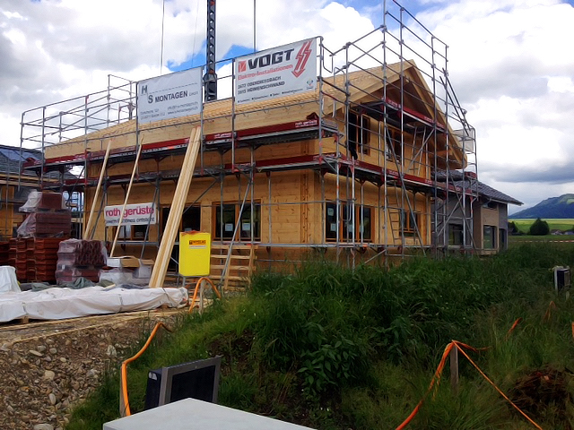 Ein stattliches Blockhaus mit besonders dicken Wänden (27cm) baut Fullwood Wohnblockhaus momentan in der Schweiz. Die glückliche Baufamilie bringt viele individuelle Ideen bei der Planung zur Innenraumgestaltung mit ein, die Fullwood gerne berücksichtigt und übernimmt. Denn der Kundenwunsch ist die allerwichtigste Leitlinie für Fullwood! Die Nachbarschaft in dem Neubaugebiet, wo das Blockhaus gebaut wird, ist sehr beeindruckt von den extra-dicken Vollholzwänden aus nordischem Kiefernholz. Dem Einzug in ihr reales Blockhaus sieht die Baufamilie mit großer Freude entgegen, zuerst muss aber noch der Innenausbau abgeschlossen werden.