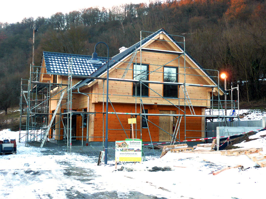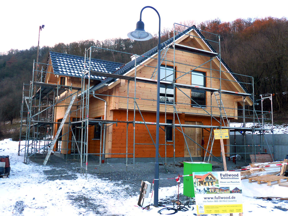 Eine Richtmeistermontage bedeutet, sie machen viel selbst und haben sogar bei der Montage der im Werk gefertigten Blockwände mitgeholfen. Auch den Teilanstrich (Erdgeschoss und Laibungen) hat die Bauherrschaft selbst durchgeführt. Noch offen ist, ob sie die restlichen Wände kontrastreich vergrauen lassen, oder in einer anderen Farbe lasieren, oder sich doch für den gleichen Anstrich entscheiden. Denn: Bei Fullwood ist alles möglich und jedes Blockhaus wird individuell geplant, bemustert und gestaltet.