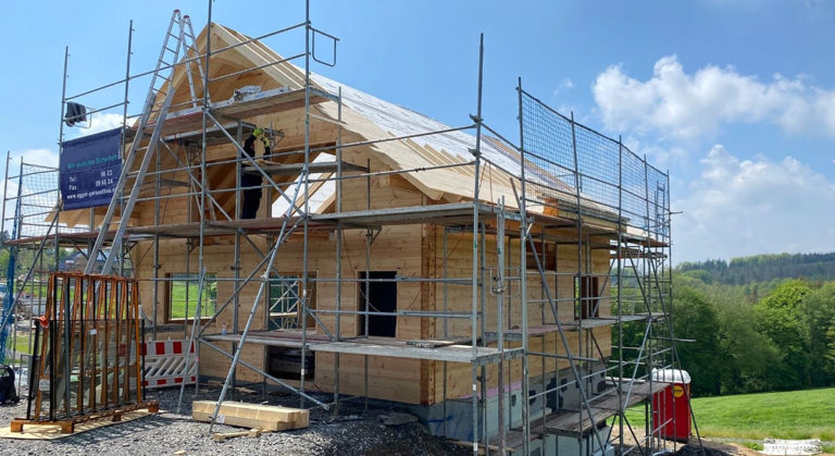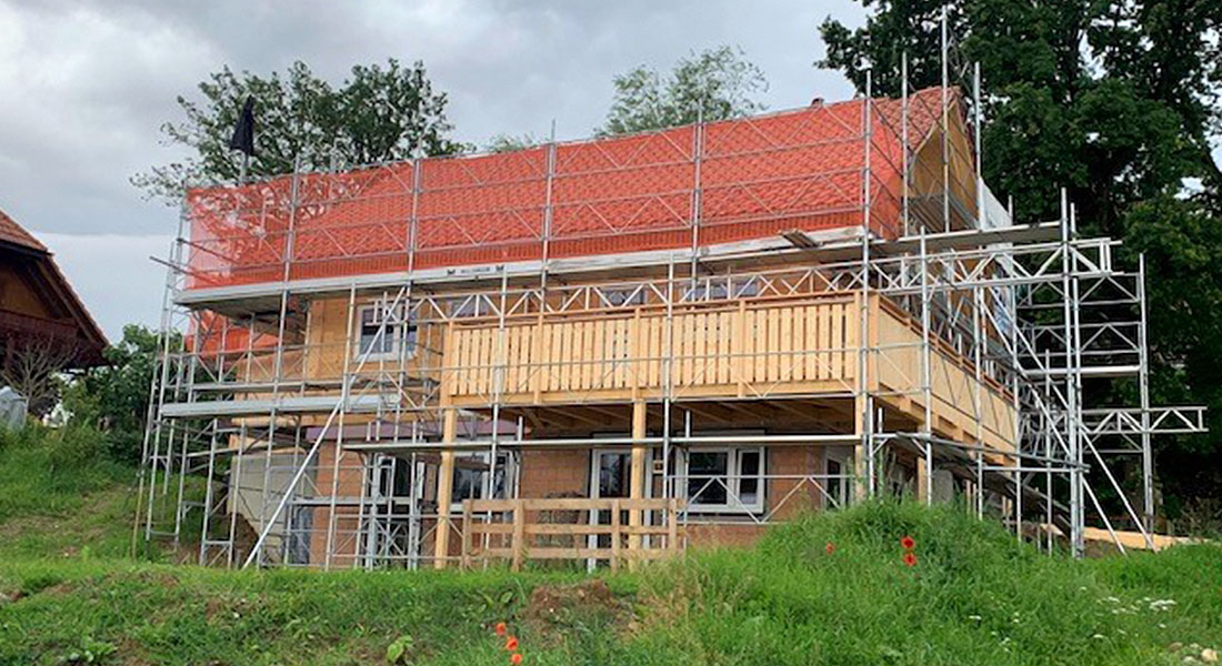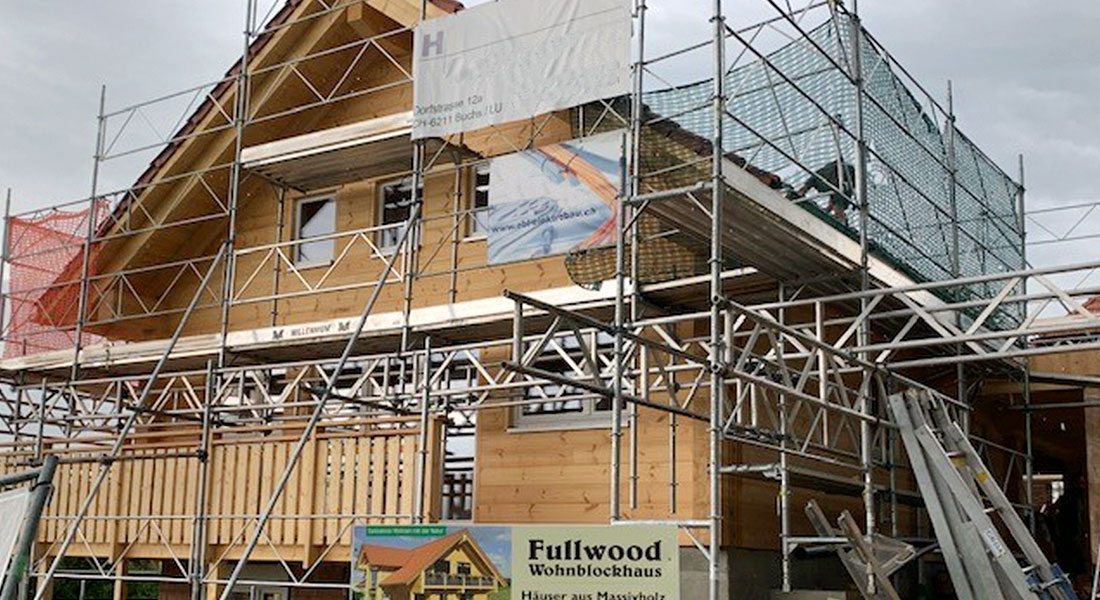 Direkt neben ihrem Bestandsanwesen baut ein anspruchsvolles Ehepaar ein Fullwood Blockhaus. Wie meist in der Schweiz üblich wählt auch diese Bauherrschaft die „Königsklasse“ unter den Fullwood-Kiefernwänden: die 27cm dicke Blockbohlenwand – pures Holz ohne Dämmung! Im Blockhaus Innern wird ein hoher Luftraum mit Galerie verwirklicht, wobei die Hauptwohnebene im Erdgeschoss verortet ist. Durch die Hanglage des Grundstücks ergibt sich ein freilegendes Untergeschoss (Mauerwerk), welches für Nebenräume aber auch Enkel-Spielzimmer ausgelegt wird. Das Bestandsanwesen übernimmt die Tochter des Baupaares mit ihrer Familie.