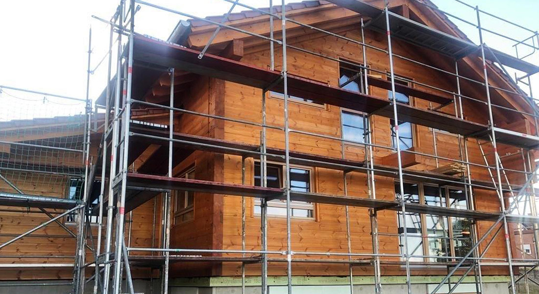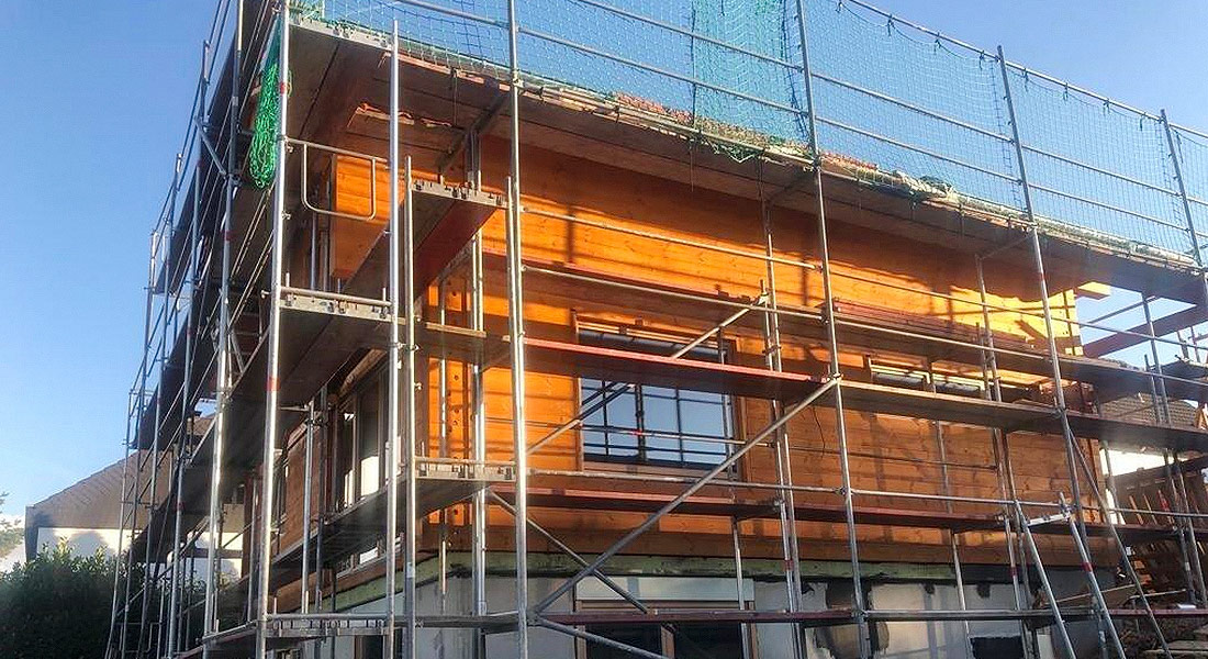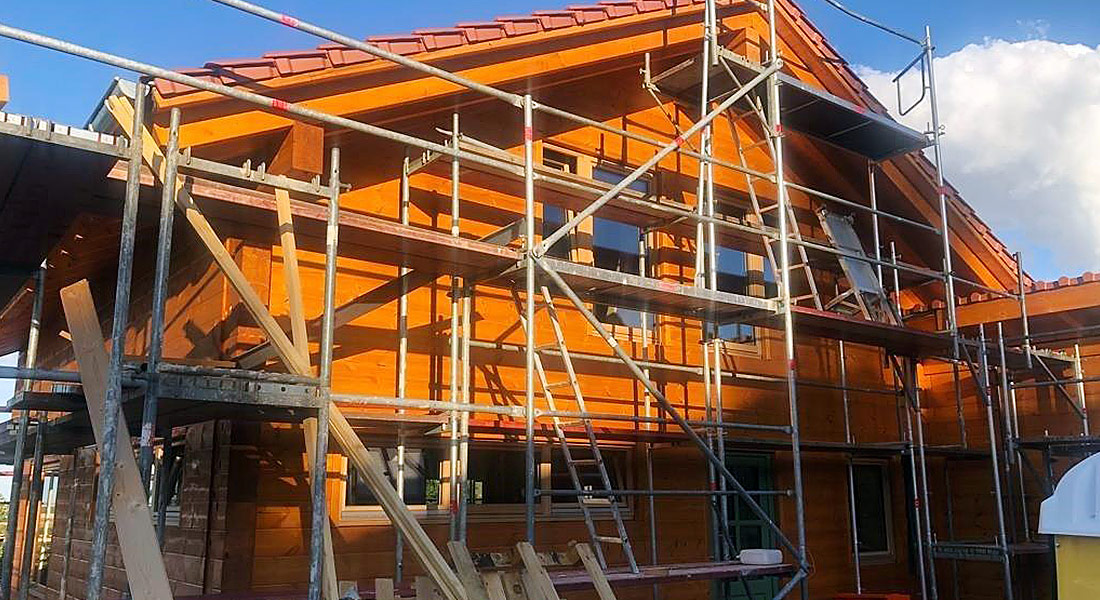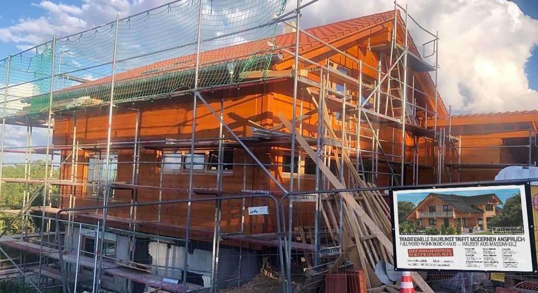 Nach sehr langer Wartezeit auf die Baugenehmigung, kann eine junge Familie nun endlich ihr Blockhaus in nachhaltiger Bauweise bauen. Montiert wird die einschalige 20er Blockwand vom Fullwood-Richtmeister und der Baufamilie selbst. Falls die Familie den Blick später von ihrem eindrucksvollen Sichtdachstuhl und den hellen Holzwänden abwenden kann, besteht auch die Möglichkeit in der weiten Ferne Köln zu erblicken.