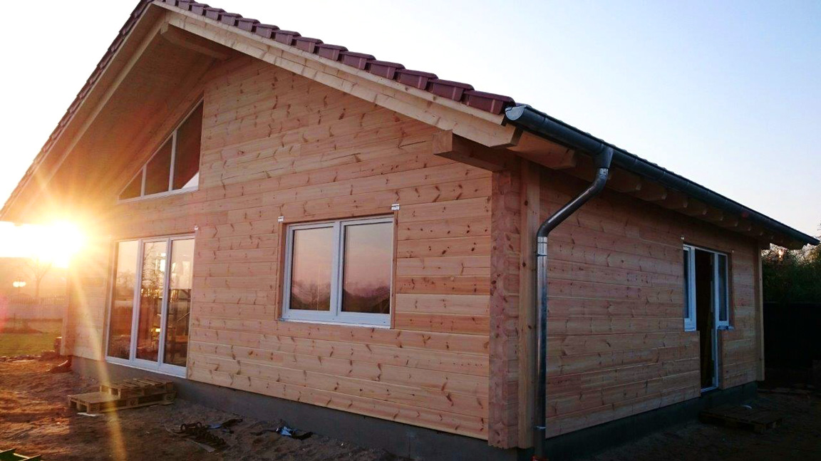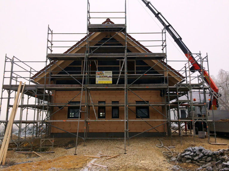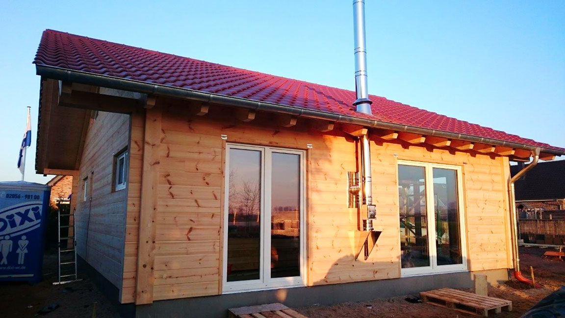 Für ein massives Blockhaus sehr modern wirkt dieses neue Blockhaus schon jetzt. Das liegt an den glatten, hellen Kiefernwänden, die dank Witterungs- und UV-Schutz ihre natürliche Farbe dauerhaft behalten; und an den weißen Fensterrahmen, welche große Fensterflächen umranden, durch die viel Tageslicht ins Hausinnere fallen wird. Ein offener, horizontal und vertikal beeindruckend großzügiger Wohnbereich setzt dieses "junge", frische Erscheinungsbild auch im Blockhaus fort. Ganz nach den Vorstellungen der Bauherrschaft entsteht ihr Blockhaus. Natürlich prüfen die Profis von Fullwood immer erst, ob alles nach Bauherrenwunsch durchführbar ist und ob das Baubudget ausreicht. Jeder Kunde wird bei Fullwood individuell beraten und zufrieden gestellt, so dass kein Blockhaus dem anderen gleicht.