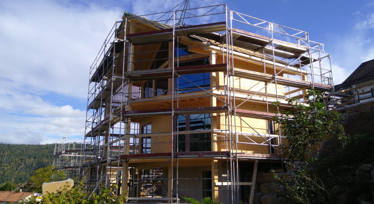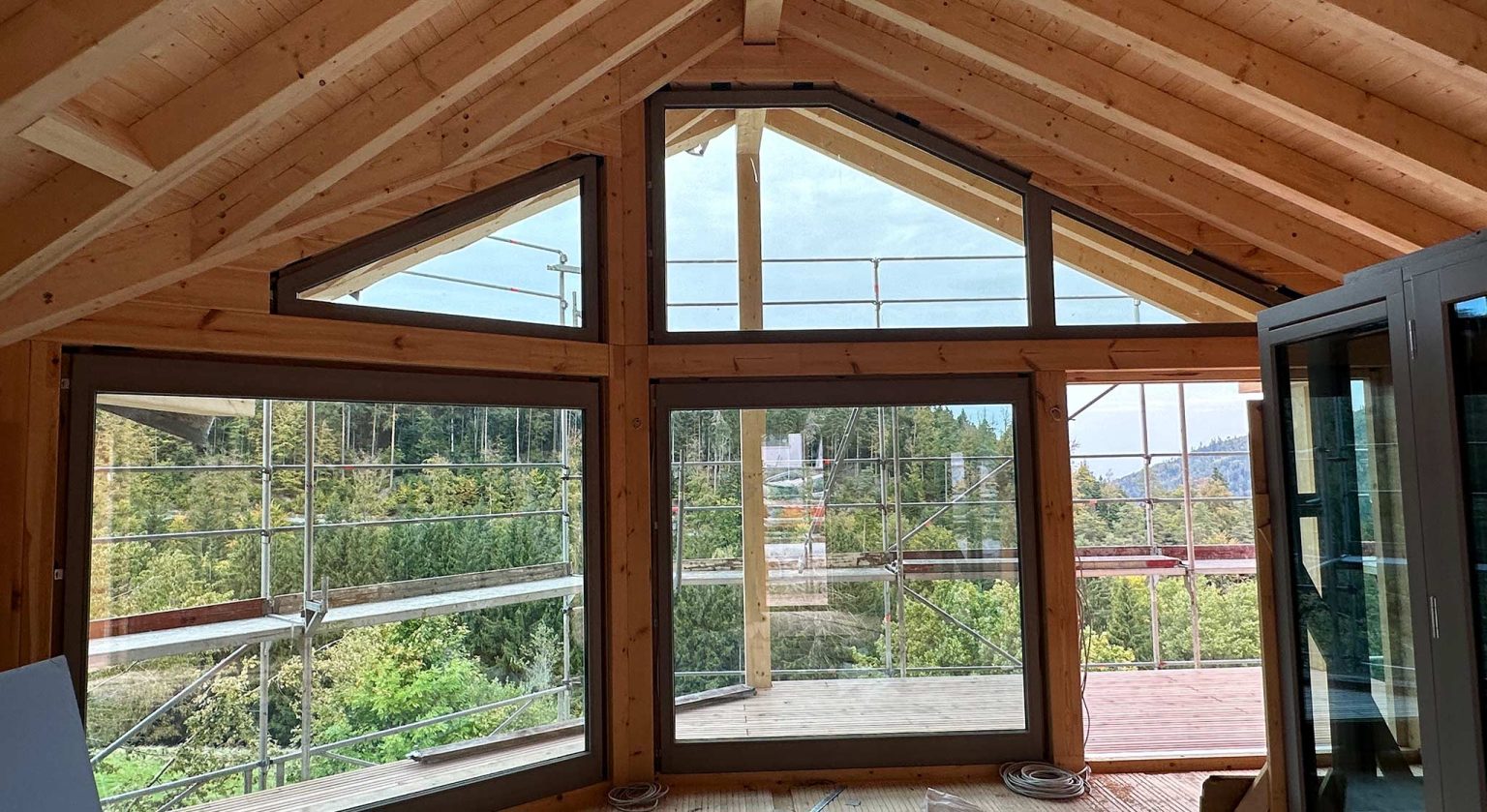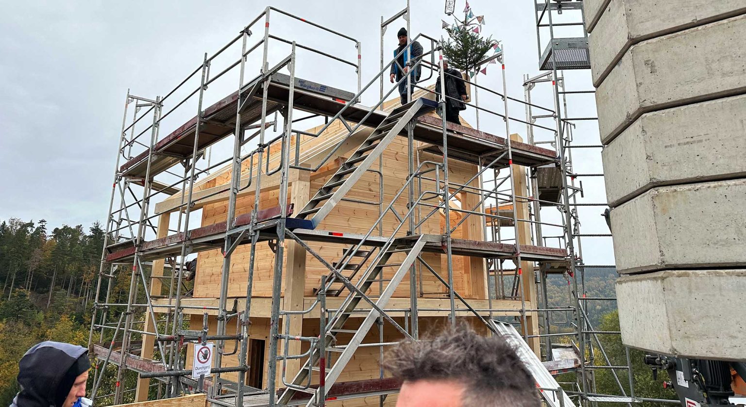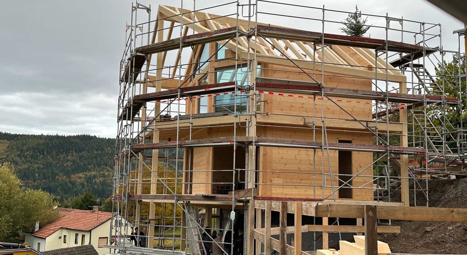 Blockhäuser ("Schwarzwalddeck") für Feriengäste am Buckelweg im Gaistal. Der Bauherr, ein ideenreicher und geschäftstüchtiger Selfmade-Mann mit ökologischem und spirituellem Bewusstsein, baut nicht zum allerersten Mal, auch nicht zum ersten Mal mit Holz, aber erstmalig mit Fullwood Wohnblockhaus. In enger Zusammenarbeit mit Fullwood werden die