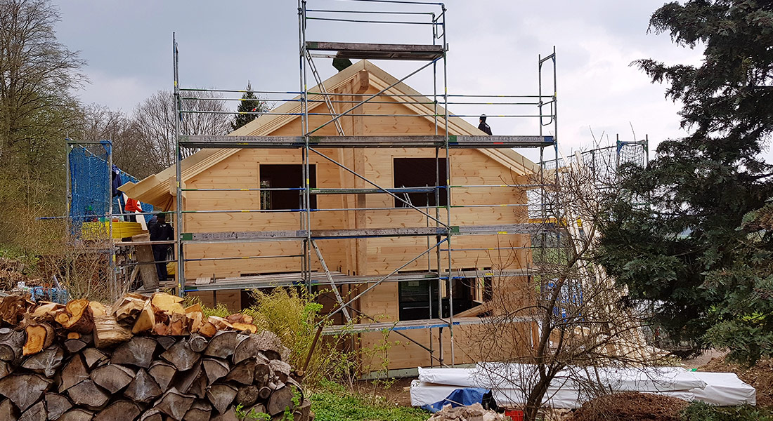 Wie jedes Blockhaus von Fullwood Wohnblockhaus entsteht auch dieses in nachhaltiger Bauweise. Der Bauherr, von Beruf Lehrer, erbringt viel Eigenleistung, begonnen bei der ausgewählten Richtmeistermontage bis hin zu einigen Ausbauarbeiten. Neben überwiegend einschaligen Blockwänden ist dem Bauherrn ein sichtbarer Dachstuhl wichtig. Selbstverständlich wird beim Blockhaus alles so geplant und durchgeführt wie der Kunde es möchte – immer unter Berücksichtigung des Budgets, des Grundstücks und der örtlichen Bauvorschriften.