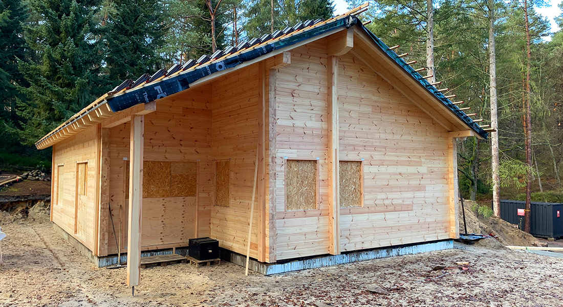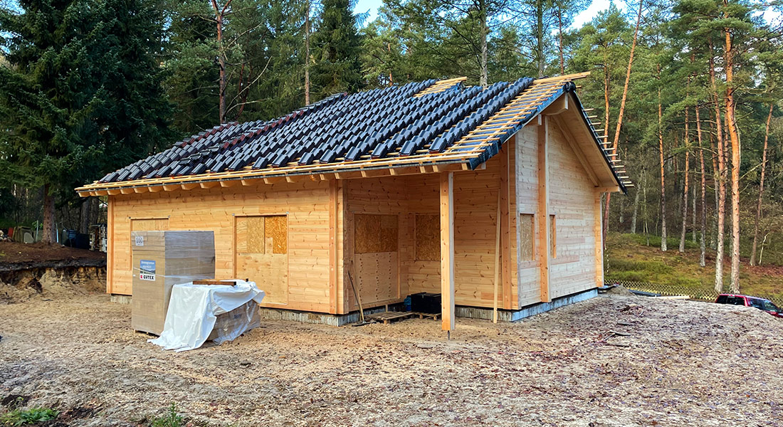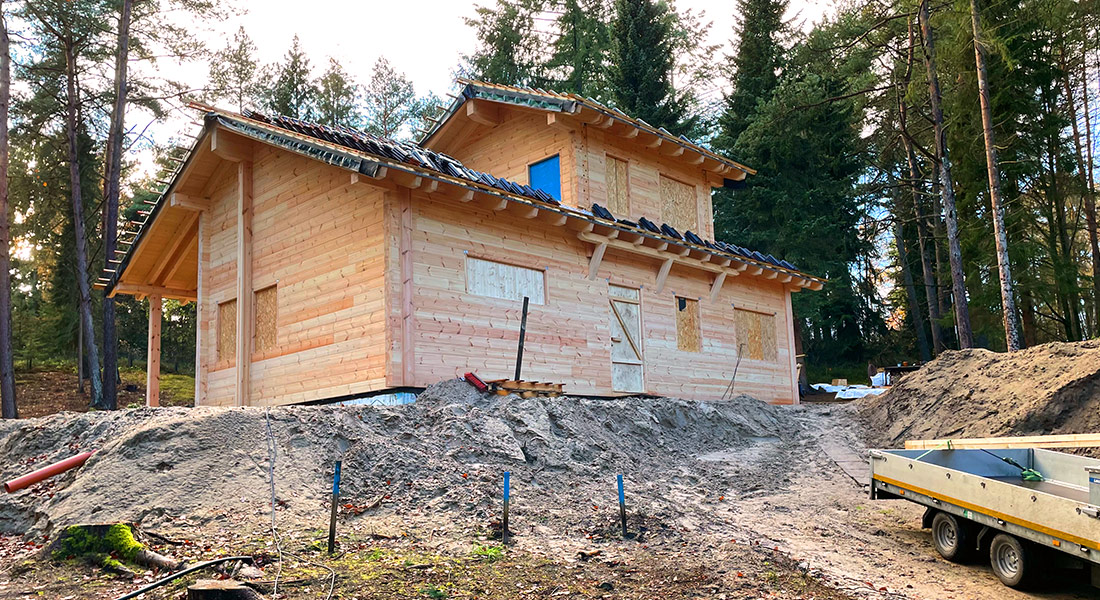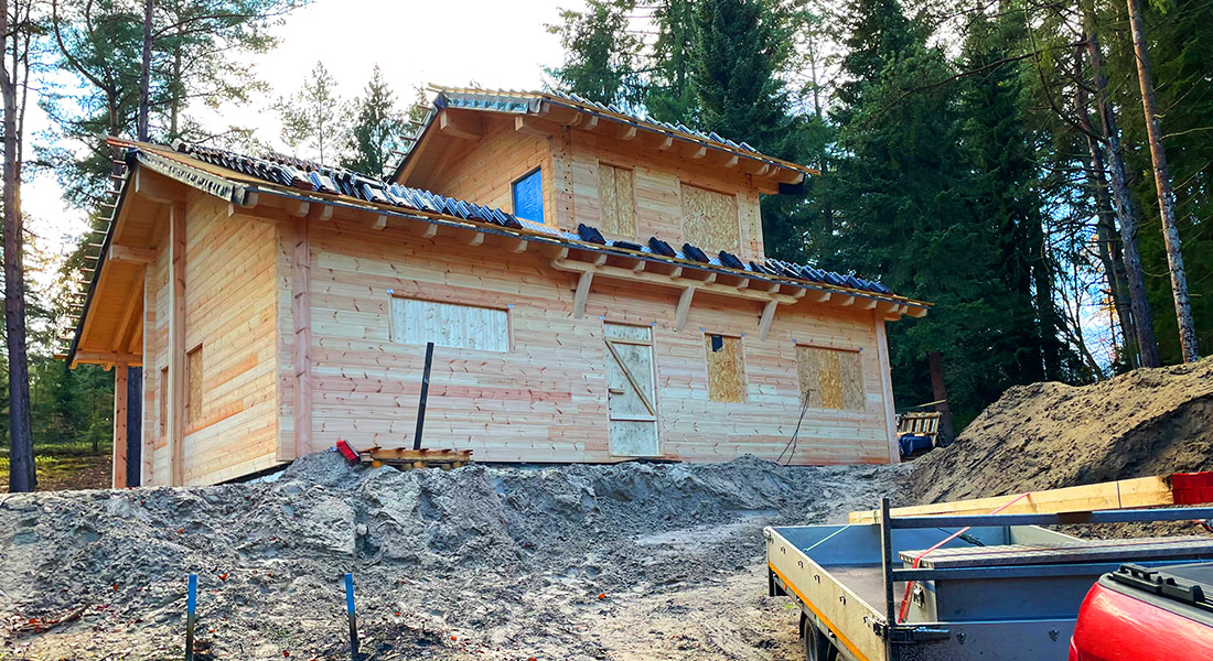 Ein junges Ehepaar, das sich ganz der Natur und dem viel draußen sein verschrieben hat, findet nicht nur sein Traumgrundstück im Wald, sondern auch den passenden Spezialisten für nachhaltiges Bauen und ökologisch gebaute Blockhäuser. Da Fullwood nach Möglichkeit jeden Extrawunsch erfüllt, wird dieses Blockhaus nicht aus der gängigen Polarkiefer hergestellt, sondern aus massivem Lärchenholz. Da die Bauherrschaft ihr Blockhaus vergrauen lässt, wählt sie das „schöner“ (weil rötlich-braun) vergrauende Lärchenholz, das ebenfalls optimal für den Hausbau geeignet ist.