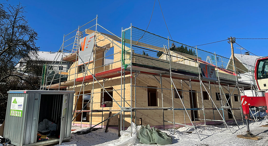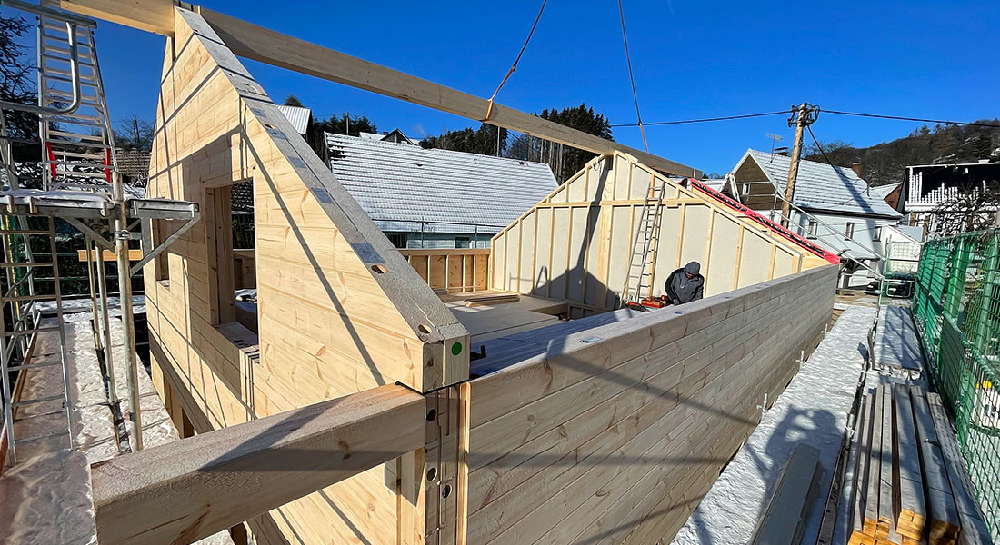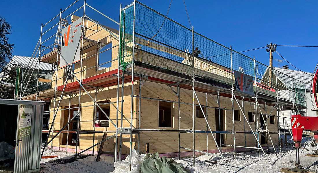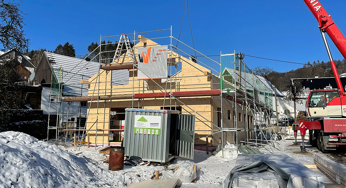 Blockhausbau bei eisigen Temperaturen