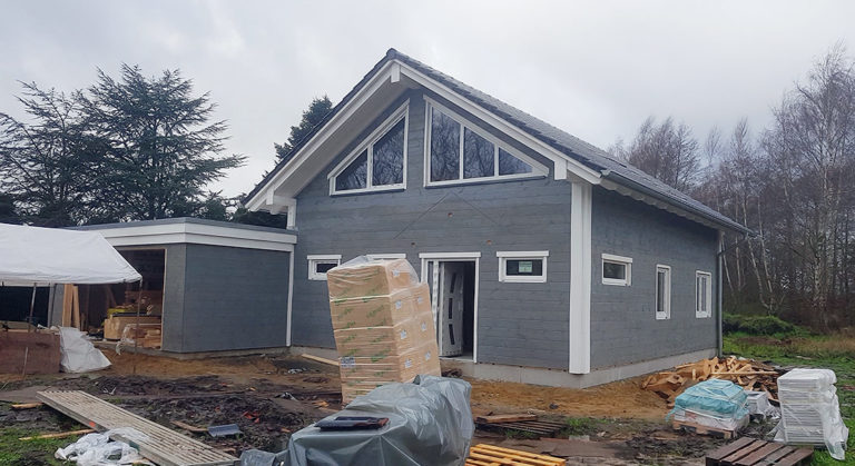 Hier erfüllt sich eine fünfköpfige Familie ihren Traum vom eigenen Blockhaus. Mit viel Eigenleistung und unter der Regie des Fullwood-Richtmeisters wird bei diesem Blockhaus die Kombiblockwand verbaut. Neben dem Hauptwohnteil für die Familie, ist auch eine Einliegerwohnung eingeplant.
