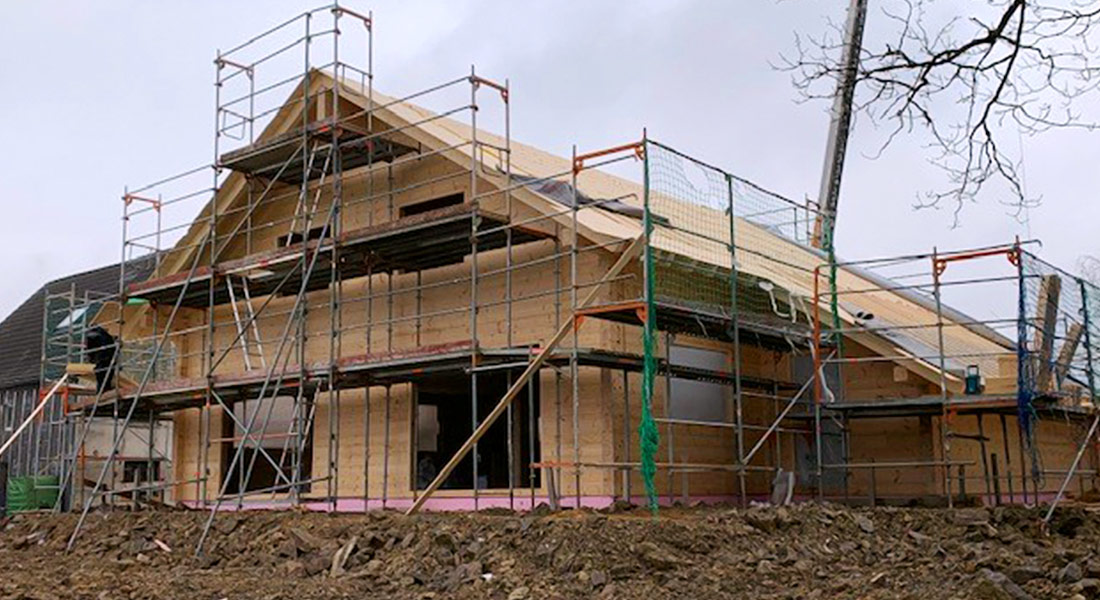 Hier baut ein echter Holzkenner sein Blockhaus in ökologischer Bauweise. Selbst in der Forstwirtschaftsbranche tätig, kommt für ihn nur nachhaltiges bauen mit Massivholz in Frage und ausschließlich ein Blockhaus in allerbester Qualität. Ganze vier Tage ist der Fullwood-Richtmeister auf der Baustelle, unterstützt vom Bauherren und dessen Helfern. Die Fotos zeigen den Baufortschritt am 5. Montagetag. Nun geht es fleißig mit dem Ausbau weiter, damit der Bauherr und sein Einlieger (Elternteil) pünktlich einziehen können.