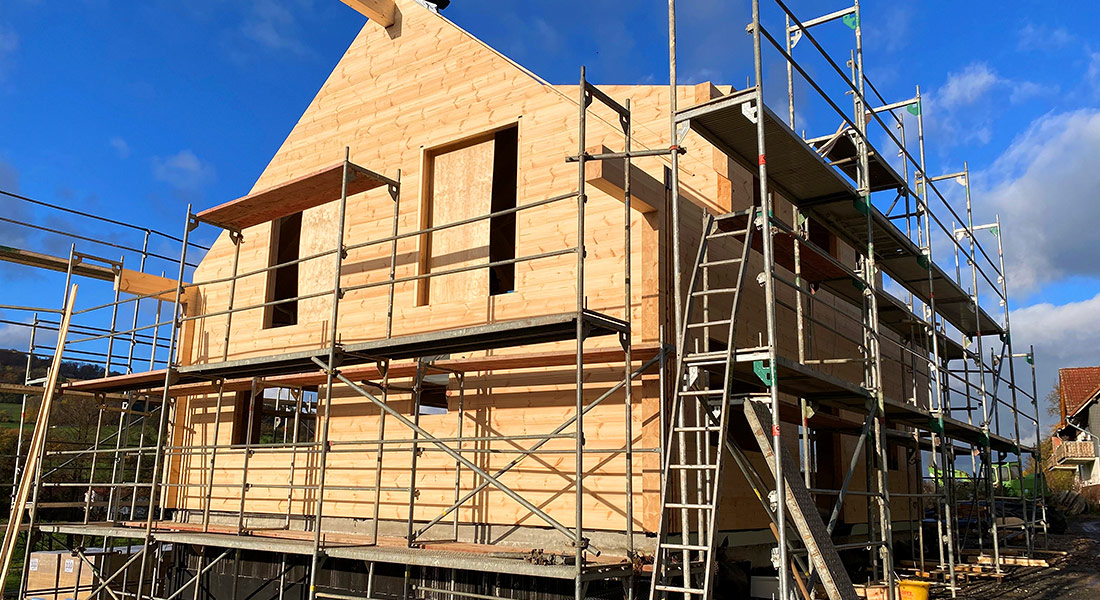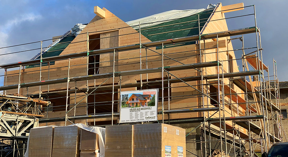 Für seine vierköpfige Familie baut ein junger Zimmermann ein Blockhaus in ökologischer Bauweise. Wohngesundheit und nachhaltiges Bauen spielen neben Behaglichkeit die größte Rolle. In Zusammenarbeit mit dem Richtmeister von Fullwood montiert der Bauherr die exakt im Werk gefertigten Wände und macht danach den Blockhaus Innenausbau komplett selbst. Sogar den Keller baut er im Vorfeld eigenhändig.