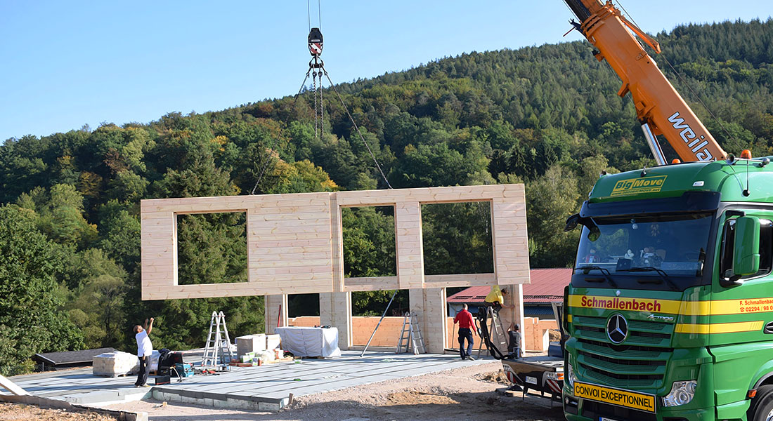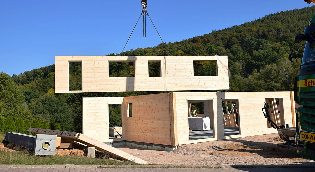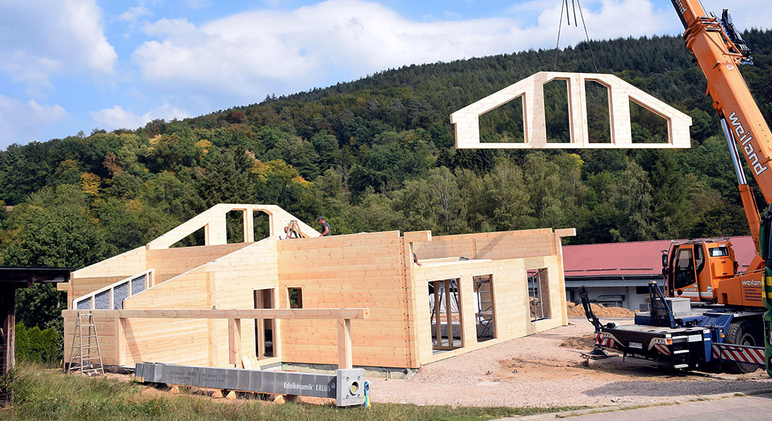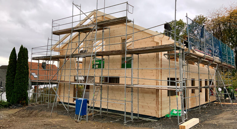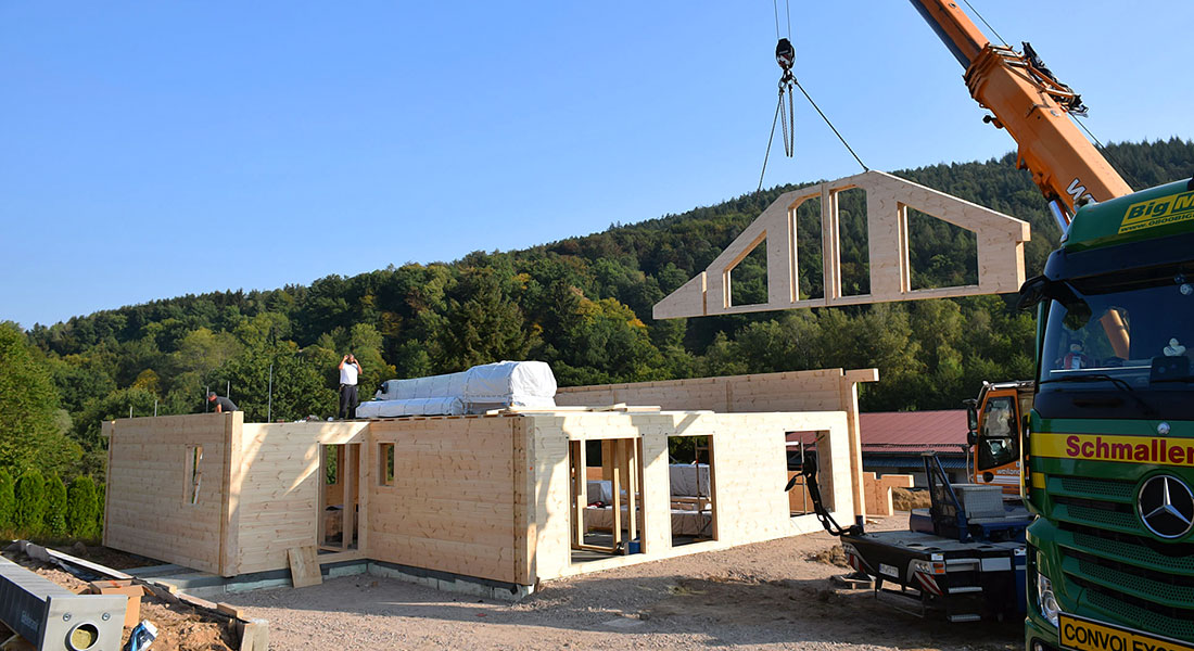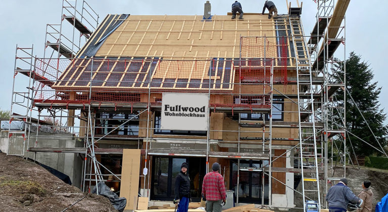 Das Klischee der agilen Rentner ohne Zeit trifft hier zu: Nur 4 Monate nach Baubeginn kann das eingeschossige Blockhaus bereits bezogen werden. Hoch lebe das Fullwood-Planungs-und-Montage-Team sowie die Fachhandwerker des Ausbaus! Barrierefreiheit mit breiteren Türen, smarte Haussteuerung über's Mobiltelephon, 20cm dicke Massivholzwände, imposanter Sichtdachstuhl, weitläufige Galerie und nicht zuletzt ein besonders hoher Carport unter den das eigene Wohnmobil passt – in diesem Blockhaus lässt es sich aushalten!