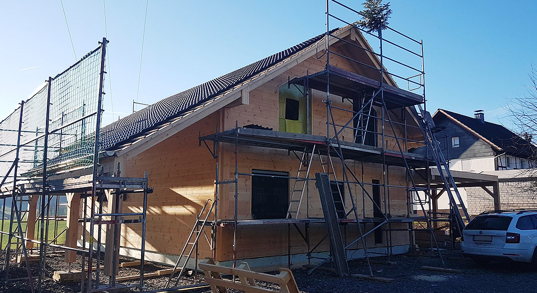 Sowohl bei der Montage der 9-er Blockwände ("Kombiblockwand") ist die Bauherrschaft tatkräftig dabei, als auch beim Innenausbau, der komplett in Eigenregie geschieht. Ihr Blockhaus kennen sie am Ende in und auswendig, schon bevor sie es beziehen und bewohnen werden. Die Vorfreude ist immens!