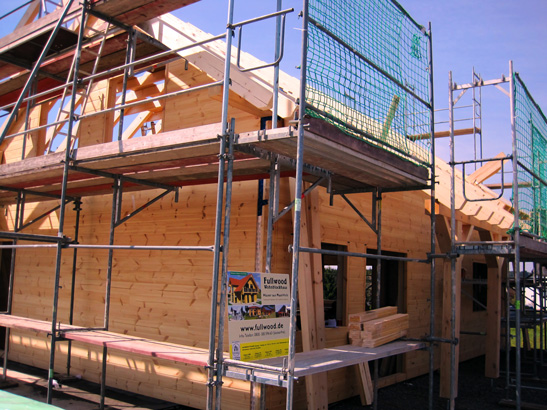Die glücklichen Bauherren träumen schon lange von einem eigenen Blockhaus und wissen ganz genau, wie es innen und außen aussehen soll. Dementsprechend wird das Blockhaus von Fullwood Wohnblockhaus penibel durchgeplant. Besonders wichtig ist der Bauherrschaft die Wartungsfreiheit ihres neuen Holzheims. Ermöglicht wird diese durch die Setzungsfreiheit der Fullwood Wände, hier die 9er Blockwand mit Selbstdämmbarkeit. Außerdem legen die Bauherren viel Wert auf die regionale Nähe ihres Blockhaus-Herstellers und wollen so viel wie möglich selbst machen. Deshalb entscheiden sie sich für die Kosten einsparende Richtmeistermontage und bauen ihr Blockhaus in Hessen unter der Regie des Fullwood Richtmeisters in nur knapp drei Tagen (!) selber auf. Dabei helfen die gesamte Familie und nette Freunde, ebenso beim bevorstehenden Ausbau. Schon jetzt ist die Baufamilie voll des Lobes für das ganze Fullwood-Team, das in Planung, Fertigung und Montage involviert ist. Auf den Einzug in ihr Blockhaus freuen sich alle über die Maßen!