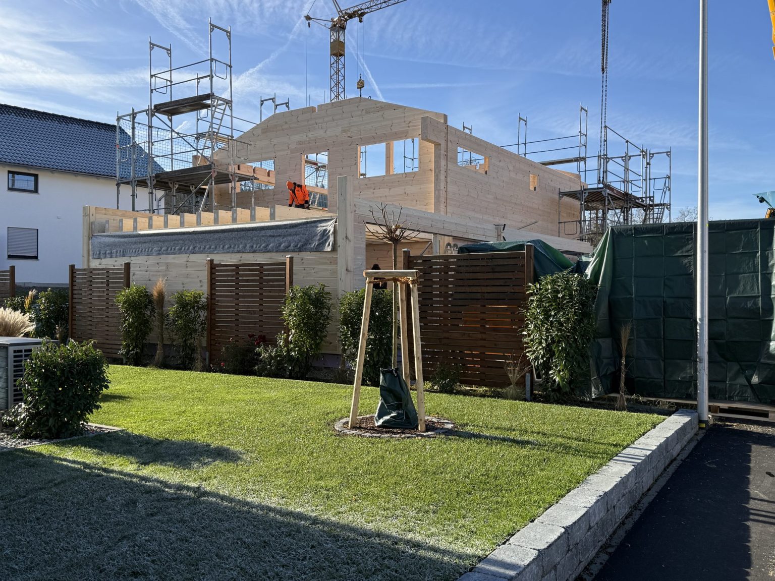 Blockhaus in Neubaugebiet